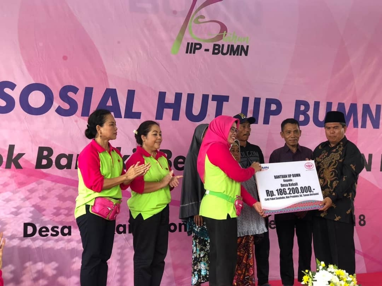 Setelah pemotongan tumpeng, rangkaian kegiatan HUT IIP BUMN yang ke 16 dilanjutkan denga diberikan secara simbolis bantuan alat produksi kepada 4 kelonpok produksi yang dalam hal ini diwakili oleh kepala desa Kekait bapak Moh. Zaini