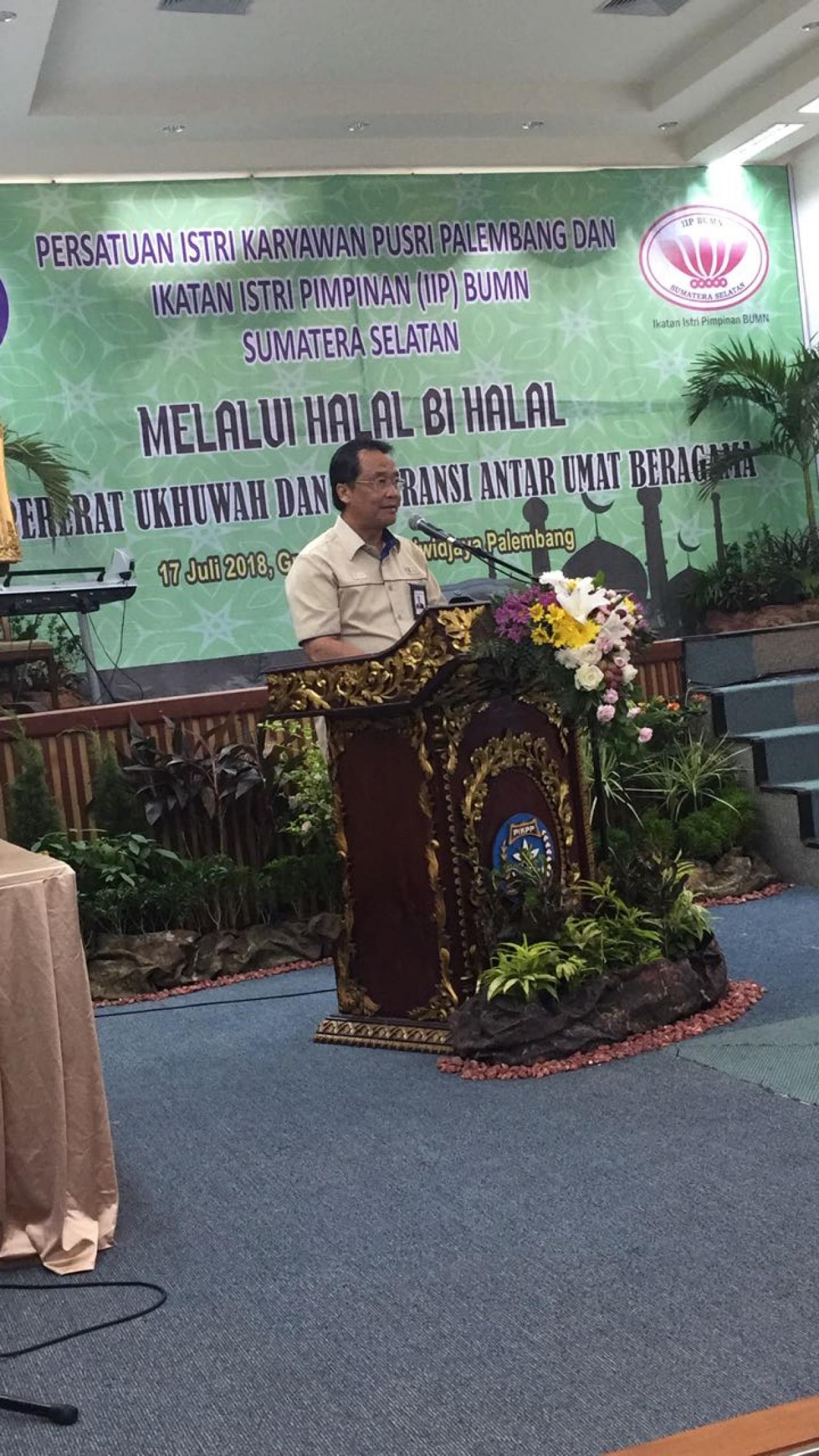 Pada kesempatan ini juga hadir Direktur Utama PT Pusri Palembang yang diwakili oleh Bapak Bob Indiarto selaku Direktur SDM dan Umum. Dirut PT Pusri Palembang dalam sambutannya menyampaikan selamat Idul Fitri 1439 H kepada seluruh undangan yang hadir dan mengapresiasi hubungan kerjasama yang sangat antara Pengurus PIKPP dan Pengurus IIP BUMN Wilayah Sumsel sehingga terlaksananya acara ini serta pemilihan tema halal Bi Halal pun sangat sesuai karena dengan mempererat ukhuwah dan toleransi antar umat beragama akan menciptaka hubungan yang harmonis dalam sendi-sendi kehidupan sehari hari ini akan memberikan dampak positif pada kegiatan berorganisasi yang telah terjalin dengan baik antara IIP BUMN Wilayah Sumsel dan PIKPP. Pada Acara ini juga disampaikan Tausyiah oleh al Ustad H. Abdul Madjid yang menekankan bahwa menjaga dan mempererat silaturahim dan ukhuwah dalam perilaku antar ummat yang wajib dilaksanakan dalam kehidupan sehari hari karena ini memang tuntunan penting yang telah di sampaikan Nabi Muhammad SWA sejak 1400 tahun yang lalu. Rasulullah pun dari zaman kenabiannya selalu menjaga toleransi antar ummat beragama.