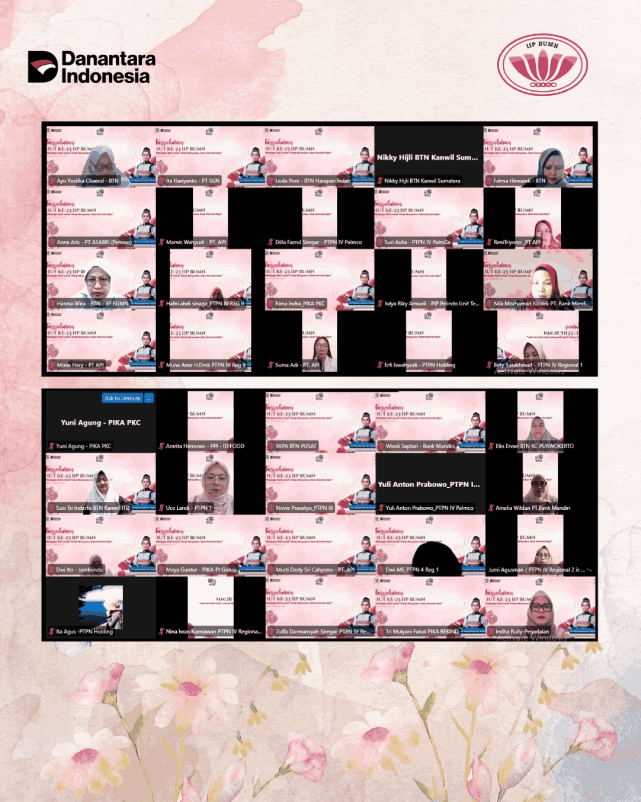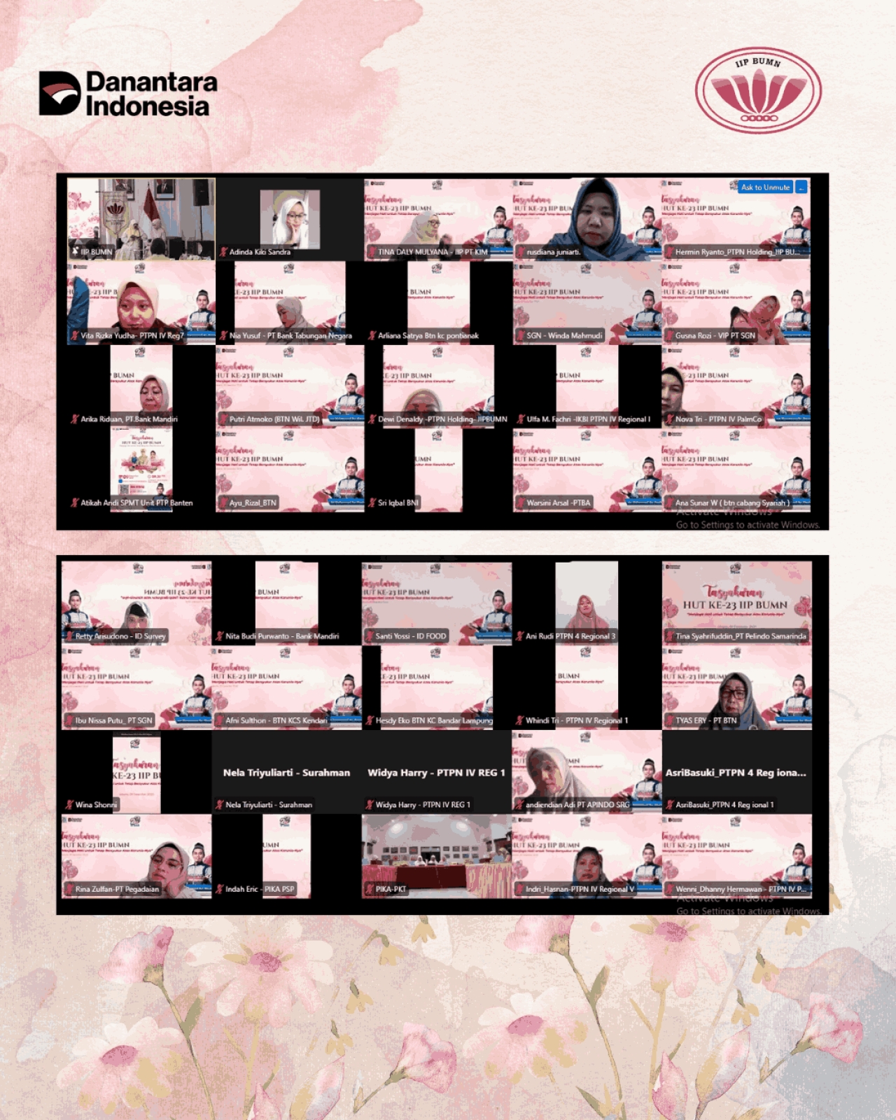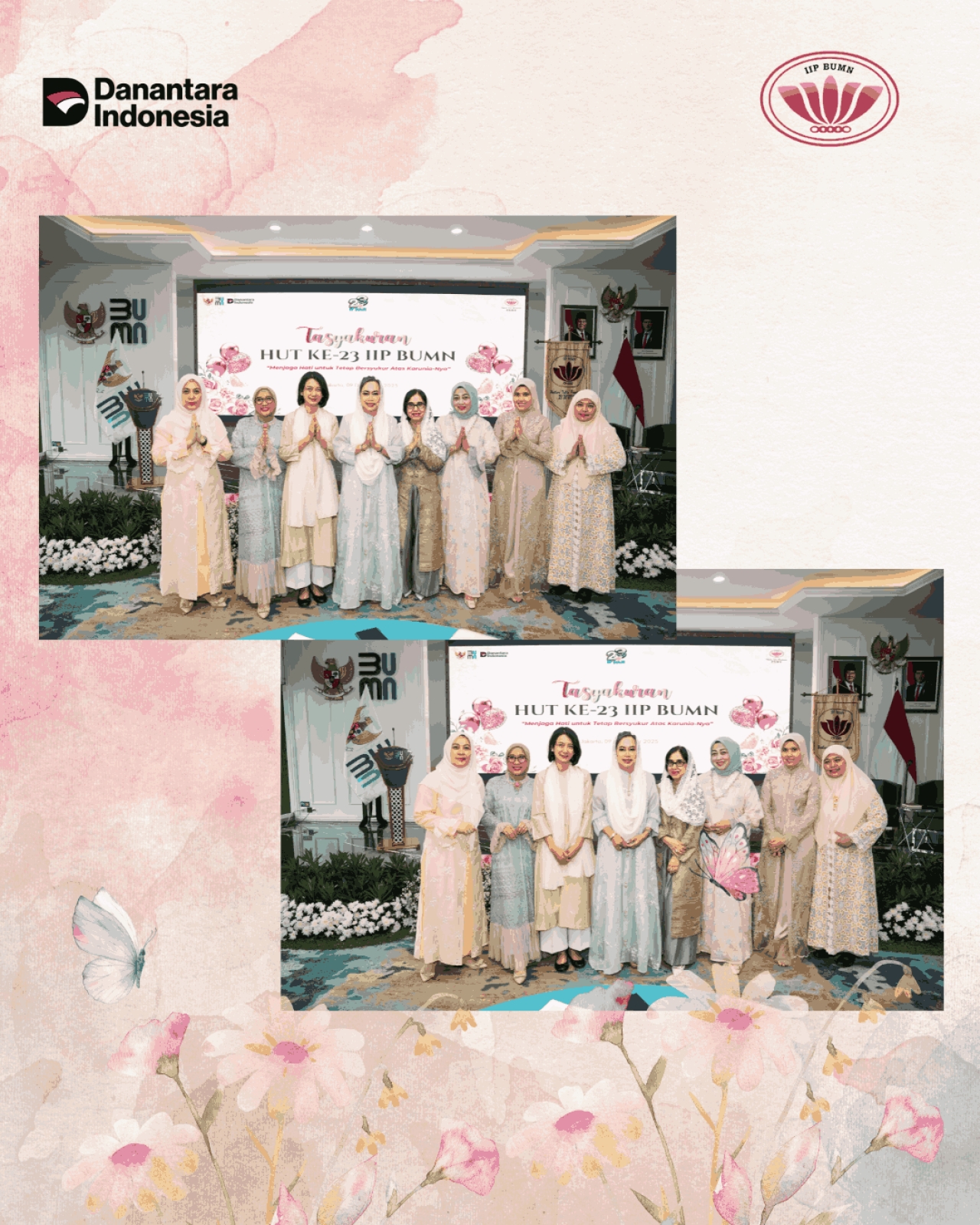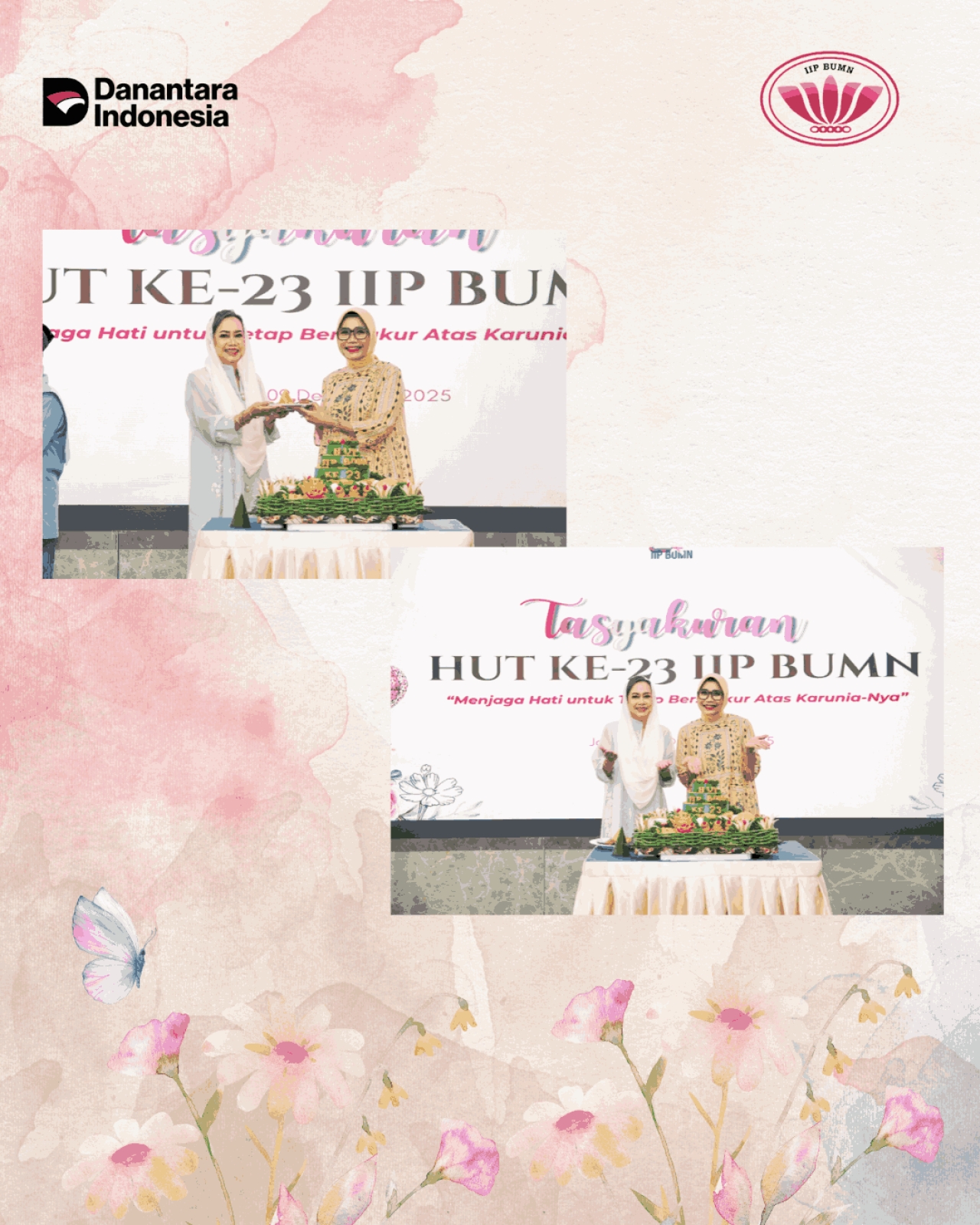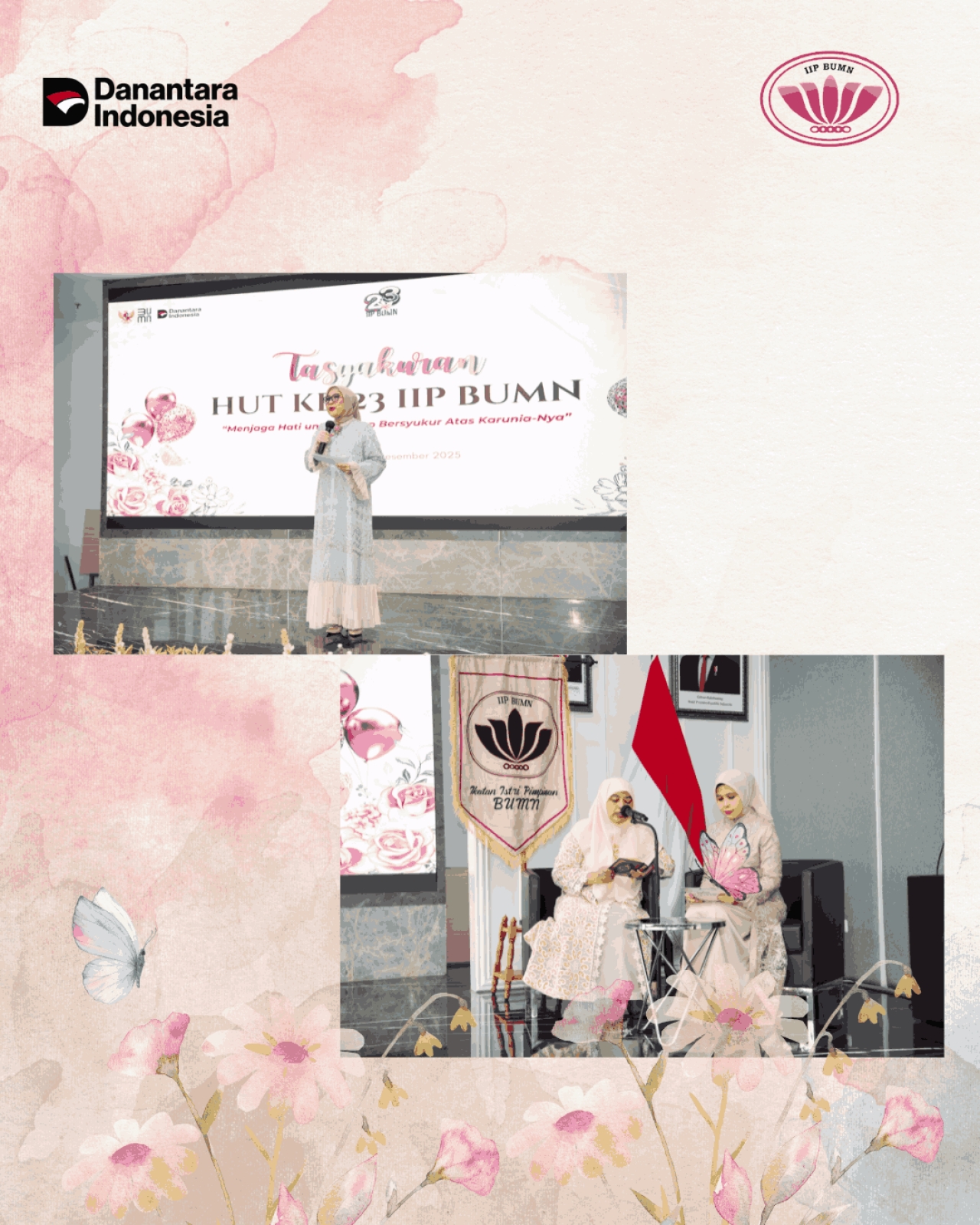 Pada hari Rabu, 9 Desember 2025 dilaksanakan Tasyakuran HUT ke-23 HUT IIP BUMN secara hybrid. Pelaksanaan acara secara offline bertempat di Gedung BP BUMN lantai 21, dengan dihadiri Ibu Vivi Dony Oskaria selaku Ketua Umum IIP BUMN, Ibu Tata Rahmad Pribadi selaku Ketua Harian IIP BUMN, tamu undangan dari DWP BP BUMN serta Pengurus IIP BUMN. Peserta zoom online sejumlah 490 orang, dihadiri purna dan anggota IIP BUMN.