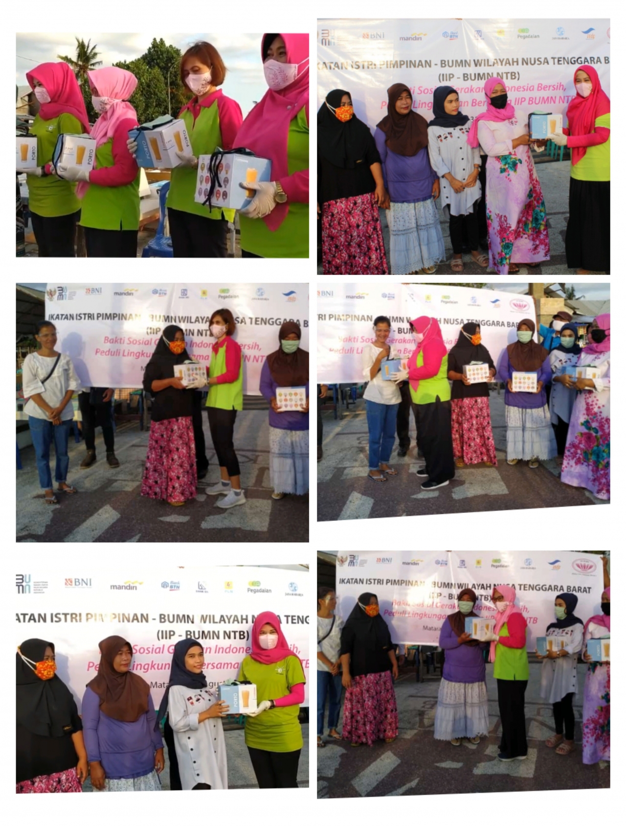 Bersama IIP BUMN NTB mewujudkan peduli lingkungan bersih dan sehat. Dihadiri oleh Ketua RT Melayu Bangsal dan perwakilan pedagang di sekitar Pantai Ampenan, pembagian gelas ramah lingkungan yang dapat digunakan kembali serta masker non medis yang bisa ulang diharapkan mampu mengurangi sampah plastik di lingkungan Pantai Ampenan. Penyerahan gelas dan masker ini dilakukan secara simbolis kepada 5 pedagang yang hadir untuk menghindari keramaian. Sebanyak 50 kios pedagang mendapatkan gelas kaca dan masker.