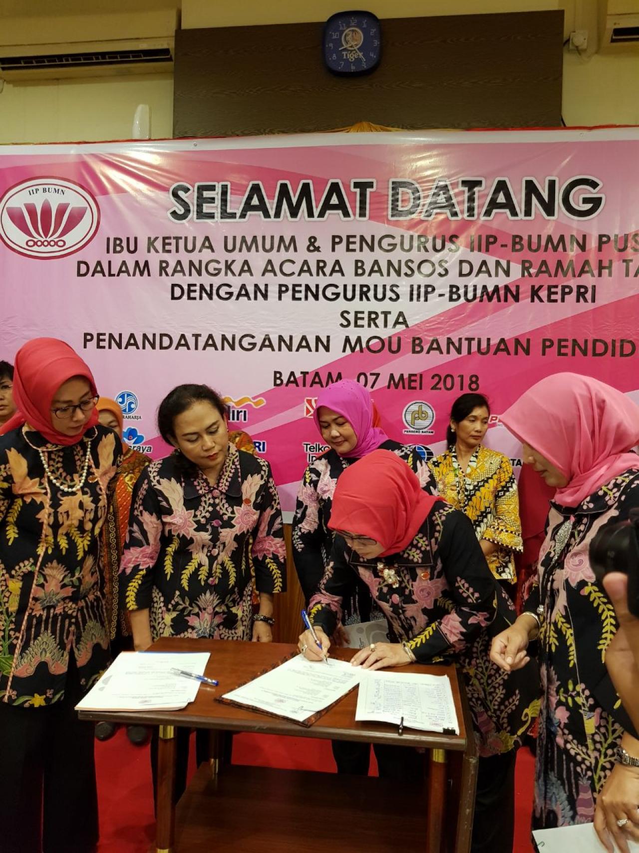 Kemudian dilanjutkan dengan penanda tanganan MOU bantuan dana pendidikan yang merupakan bagian dari program kerja dari IIP BUMN Pusat oleh Ketua Harian IIP BUMN Pusat Ibu Yuni Marsono kepada Ketua Korwil A Ibu Deicy Pulungan disaksikan Ketua Umum IIP BUMN Ibu Eri Imam Apriyanto. Dilanjutkan penyerahan dana bantuan pendidikan dari Ketua Korwil A Ibu Deicy Pulungan kepada Ketua IIP BUMN wilayah Kepulauan Riau Ibu Siti Zahra Afrizam