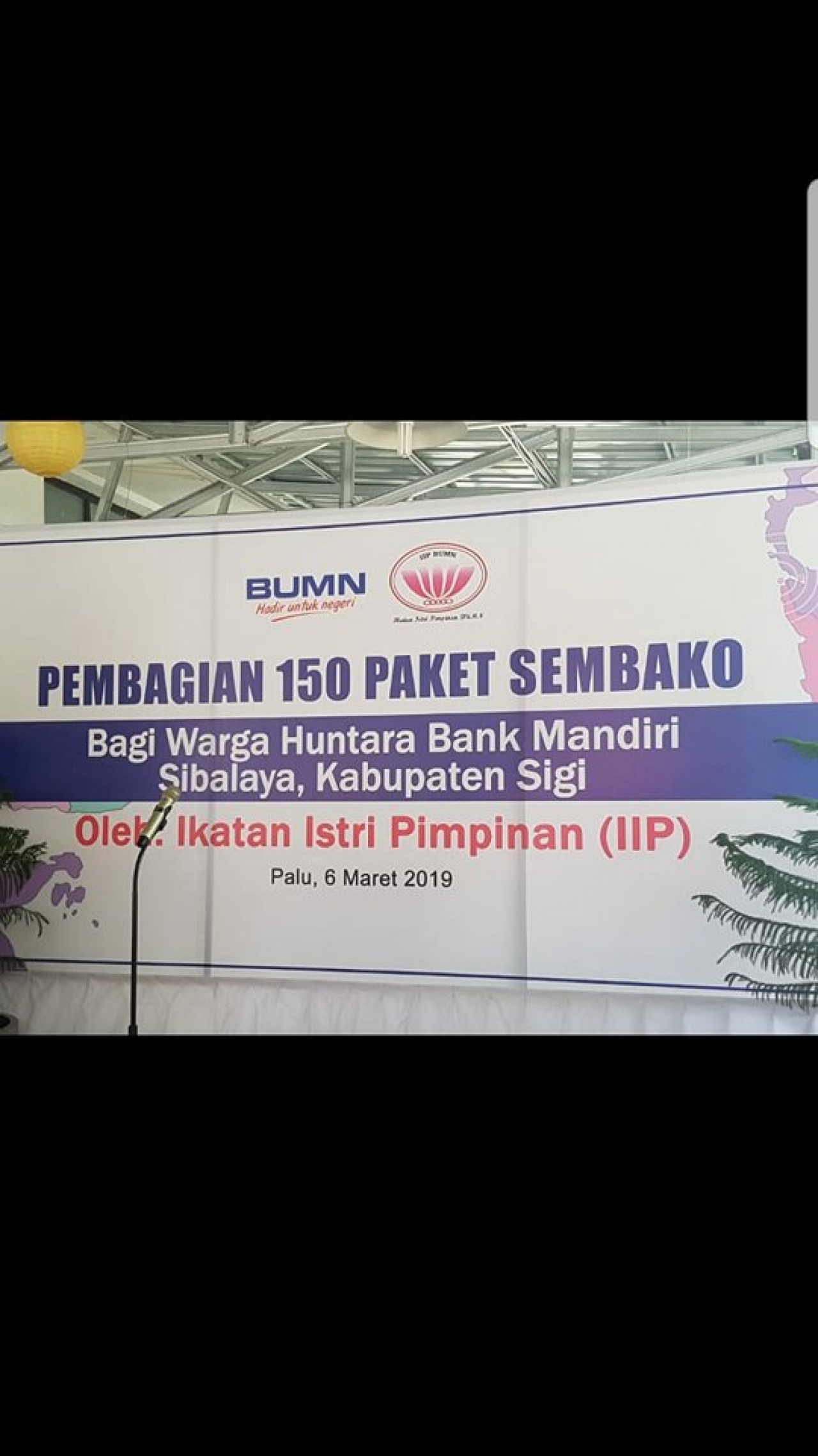 Kegiatan Ikut Serta IIP BUMN Sul Sel dengan Rombongan IIP BUMN Pusat tanggal 6 Maret di Palu yaitu kegiatan Pembagian 150 paket sembako dan peletakan batu pertama pembangunan Masjid oleh Ketua IIP BUMN Pusat oleh Ibu Eri Imam Apriyanto.