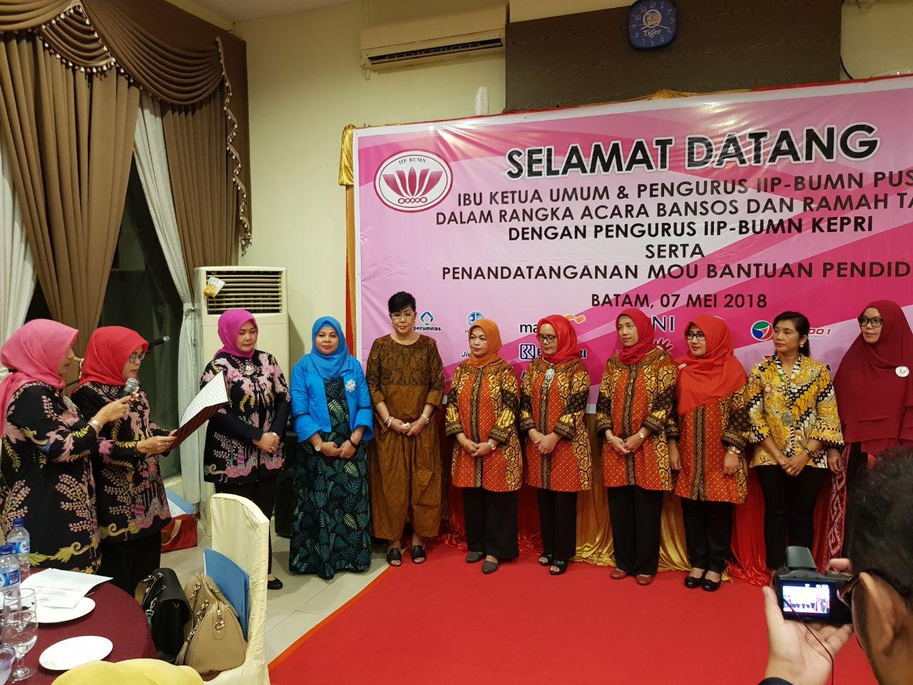 Masih dalam rangkaian kegiatan kunjungan Kettua Umum IIP BUMN dan jajaranya ke Batam adalah pengukuhan pengurus IIP BUMN wilayah Kepri dan penandatanganan SK pengurus oleh Ketua Umum IIP BUMN. Kemudian dilanjutkan dengan penanda tanganan MOU bantuan dana pendidikan yang merupakan bagian dari program kerja dari IIP BUMN Pusat oleh Ketua Harian IIP BUMN Pusat Ibu Yuni Marsono kepada Ketua Korwil A Ibu Deicy Pulungan disaksikan Ketua Umum IIP BUMN Ibu Eri Imam Apriyanto.