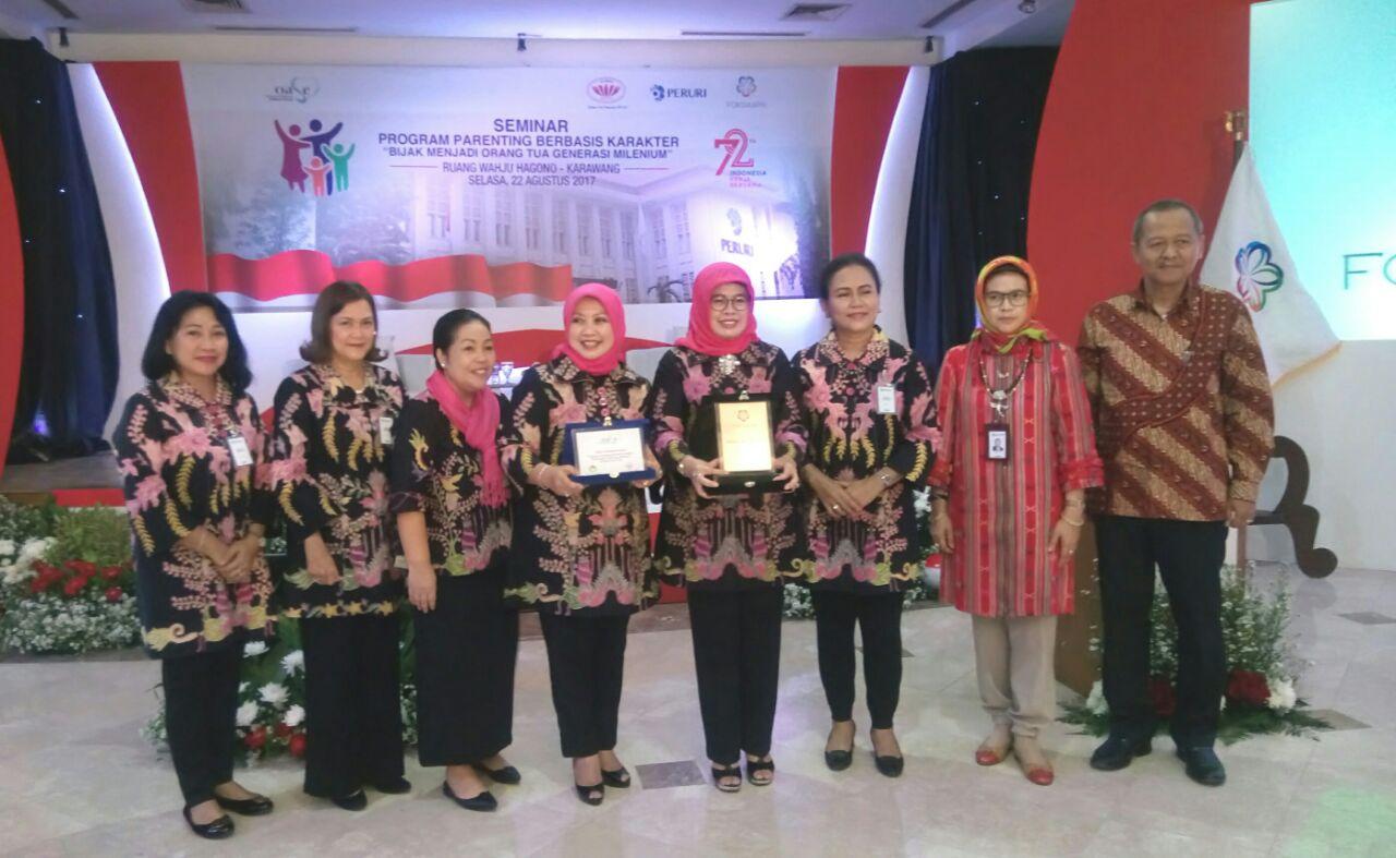 Karawang - Forum Silaturahmi Istri Karyawan Perum Peruri (FORSIKAPRI) bekerjasama dengan Perum Peruri menyelenggarkan seminar parenting berbasis karakter dengan tema "Bijak Menjadi Orang Tua Generasi Milenium, seminar ini berlangsung di Gedung SDM Kantor Peruri, Selasa (22/8/2017). Seminar dibuka secara resmi oleh Ketua Umum IIP BUMN, Ibu Eri Imam Apriyanto.