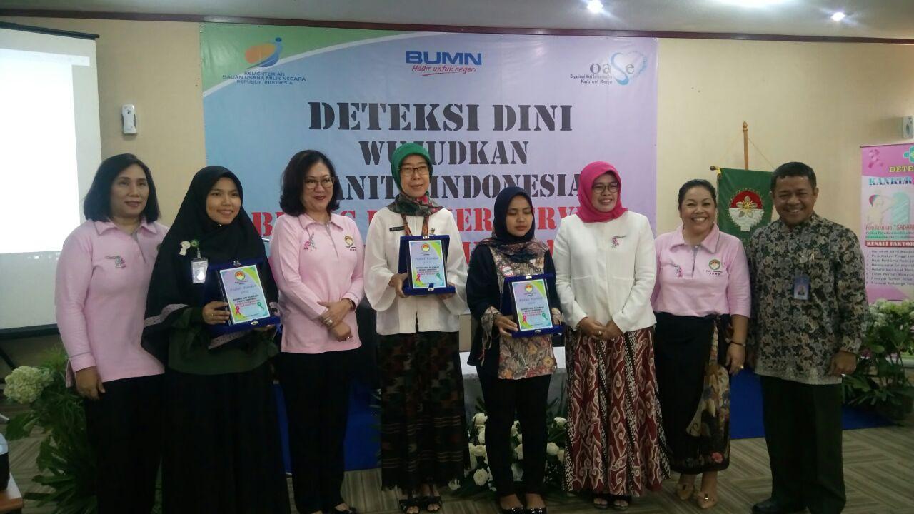 Sesuai himbauan ketua umum OASE perihal Deteksi Dini , Wujudkan Wanita Indonesia Bebas Kanker, dan dalam rangka Bulan Peduli Kanker Payudara Internasional, DWP bersama IIP BUMN bekerjasama dengan Kementerian BUMN mengadakan kegiatan Deteksi Dini Kanker Pada perempuan. Kegiatan ini diikuti oleh 300 peserta yang terdiri dari pegawai Kementerian BUMN, pegawai BUMN, anggota DWP Kementerian BUMN dan Anggota IIP BUMN.