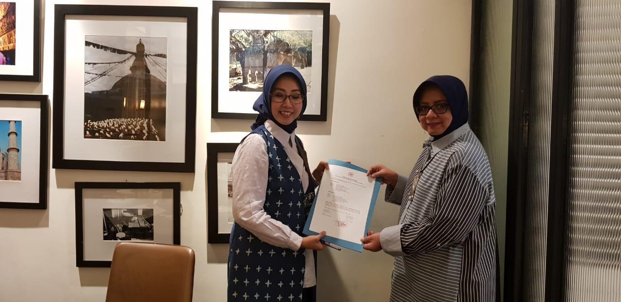 Penyerahan Dana Bantuan Pendidikan dari IIP BUMN Pusat kepada IIP BUMN wilayah Jambi diserahkan oleh ibu Deicy Pulungan sebagai Wakil Ketua Korwil A IIP BUMN Pusat kepada ibu Ika Haslan Saragih sebagai Ketua Perwakilan Wilayah Prop. Jambi