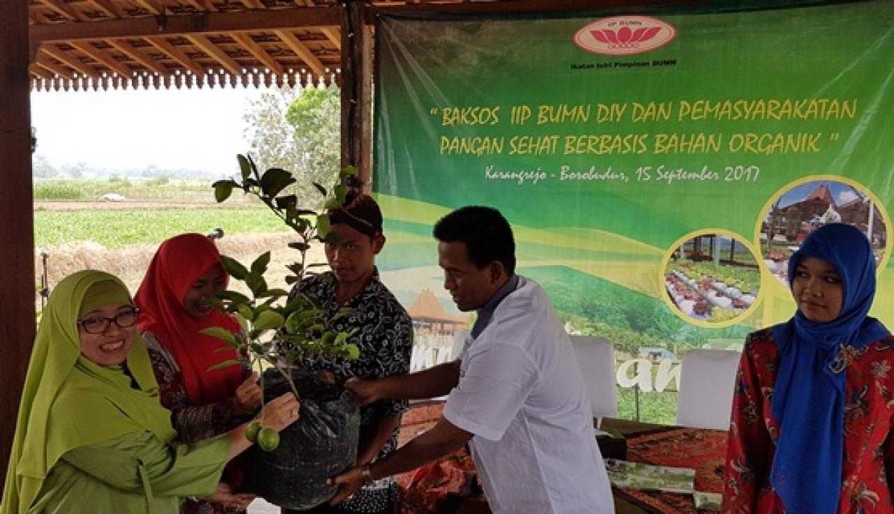 Baksos IIP BUMN DIY dan Pemasyarakatan Pangan Sehat Berbasis Bahan Organik Dorong Ibu-Ibu Kampung Organik Desa Karangrejo Borobudur Produktif Borobudur, 15 September 2017 . Ikatan Istri Pimpinan (IIP) BUMN wilayah Daerah Istimewa Yogyakarta (DIY) sebagai para pendamping pimpinan BUMN-BUMN turut memberikan dukungan nyata terhadap perkembangan kawasan pariwisata Borobudur, salahsatunya program Sinergi BUMN melalui Balai Ekonomi Desa (Balkondes).