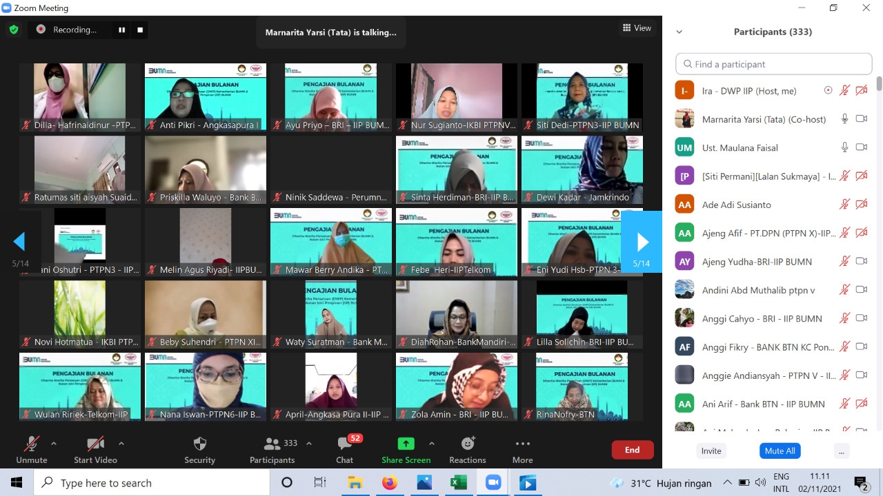 Puji syukur kehadirat Allah SWT hari ini Selasa 2 November 2021, telah dilaksanakan pengajian rutin DWP Kementrian BUMN - IIP BUMN