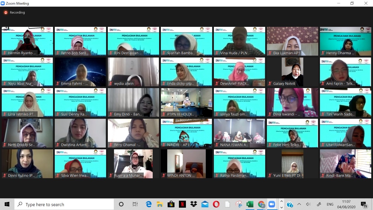 Jakarta, 4 Agustus 2020, keluarga besar DWP Kementrian BUMN dan IIP BUMN melaksanakan kegiatan pengajian rutin dengan tema Hati, Haji dan Perilaku