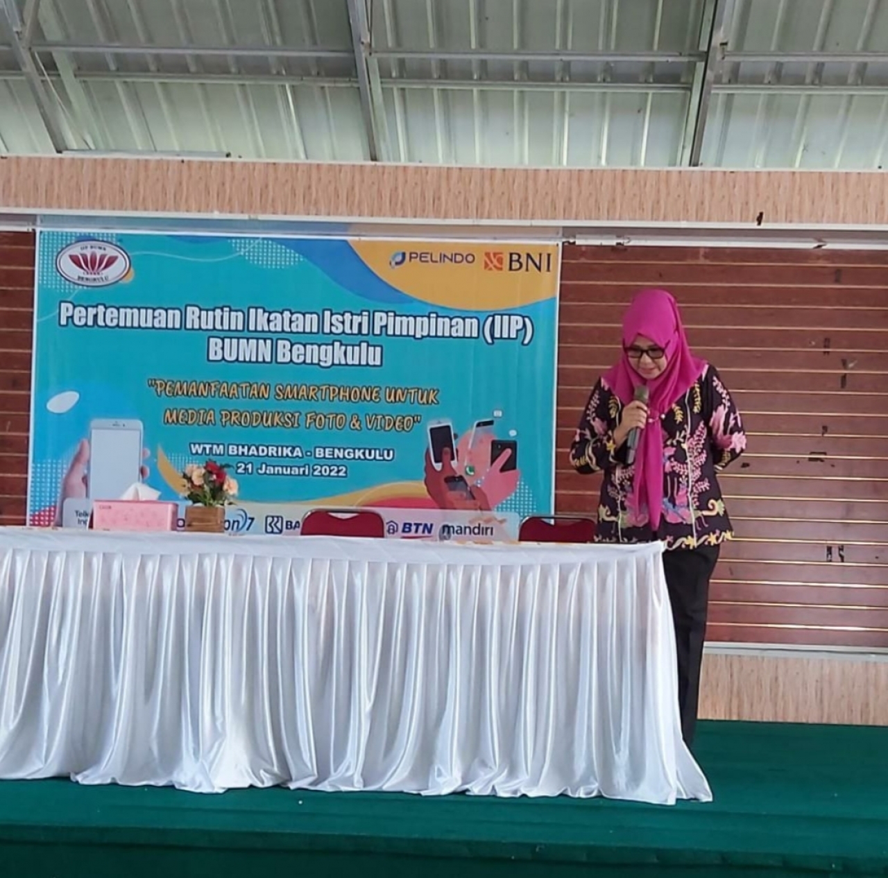 Tanggal 21 Januari 2022 diadakan Pertemuan Rutin Ikatan Istri Pimpinan ( IIP ) BUMN Bengkulu sebagai pembuka awal tahun. Dengan tema " Pemanfaatan Smartphone Untuk Media Produksi Foto & Video"Narasumber bapak Heri Aprizal. Hasil dari Materi tersebut ibu - ibu IIP BUMN Bengkulu bisa lebih memahami untuk hal dokumentasi foto & video supaya lebih menarik dan mengetahui fungsi untuk penetapan pola foto dan cahaya untuk hasil foto yang bagus. Pertemuan IIP BUMN Bengkulu ini diselenggarakan oleh Pelindo & BNI bertempat di WTM Bhadrika Kota Bengkulu