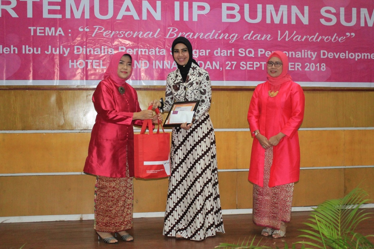 Pada tanggal 27 September 2019, IIP BUMN SUMUT kembali menyelenggarakan pertemuan yang kali ini diselenggarakan oleh Panpel III. Panpel III terdiri atas PTPN 2, Inalum, Grand Inna Medan, Pertamina, PLN, Jasa Raharja dan BNI. Pertemuan kali ini diisi dengan Seminar Kepribadian yang berjudul Personal Branding and Wardrobe dengan pembicara Ibu Juli Dinalia Permata Siregar dari SQ Personality Development. Acara disampaikan secara interaktif dan menarik sehingga menarik minat para peserta. Inti dari seminar ini adalah bahwa para ibu sebagai istri pimpinan BUMN seyogiyanya mampu menampilkan diri secara menarik tidak hanya penampilan lahiriah tetapi juga penampilan batiniah. Penampilan lahiriah dengan mampu berbusana yang baik melalui padu padan penampilan yang serasi sesuai dengan acara yang sedang diikuti. Penampilan batiniah adalah dengan menampilkan karakter mulia dan percaya diri.