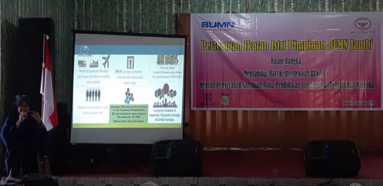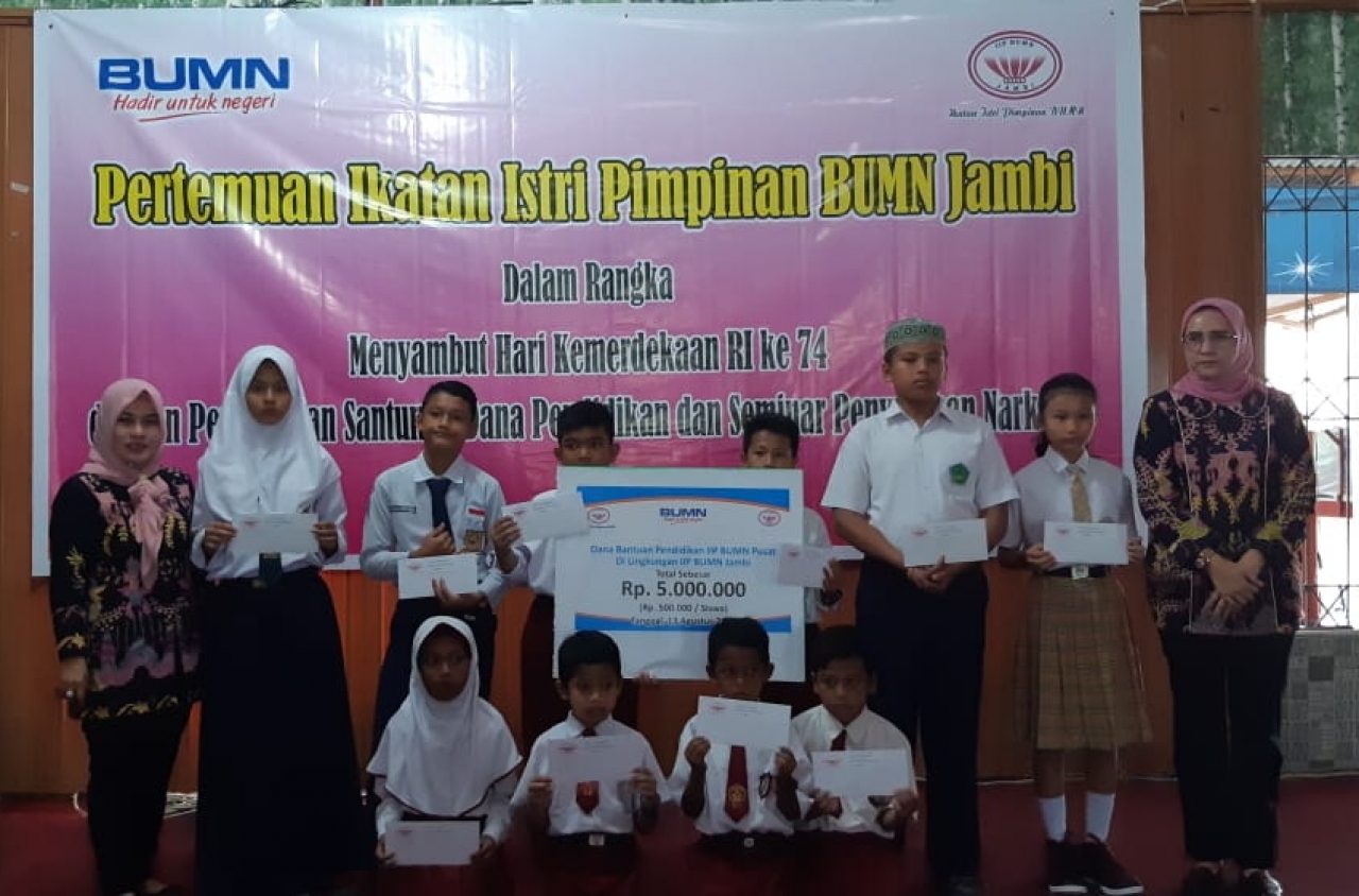 Dan dalam kesempatan kali ini disertai dengan Penyerahan Dana Pendidikan dari IIP BUMN kepada anak-anak karyawan BUMN serta seminar Narkoba yang disampaikan oleh ibu Latifah dari BNN Provinsi Jambi.