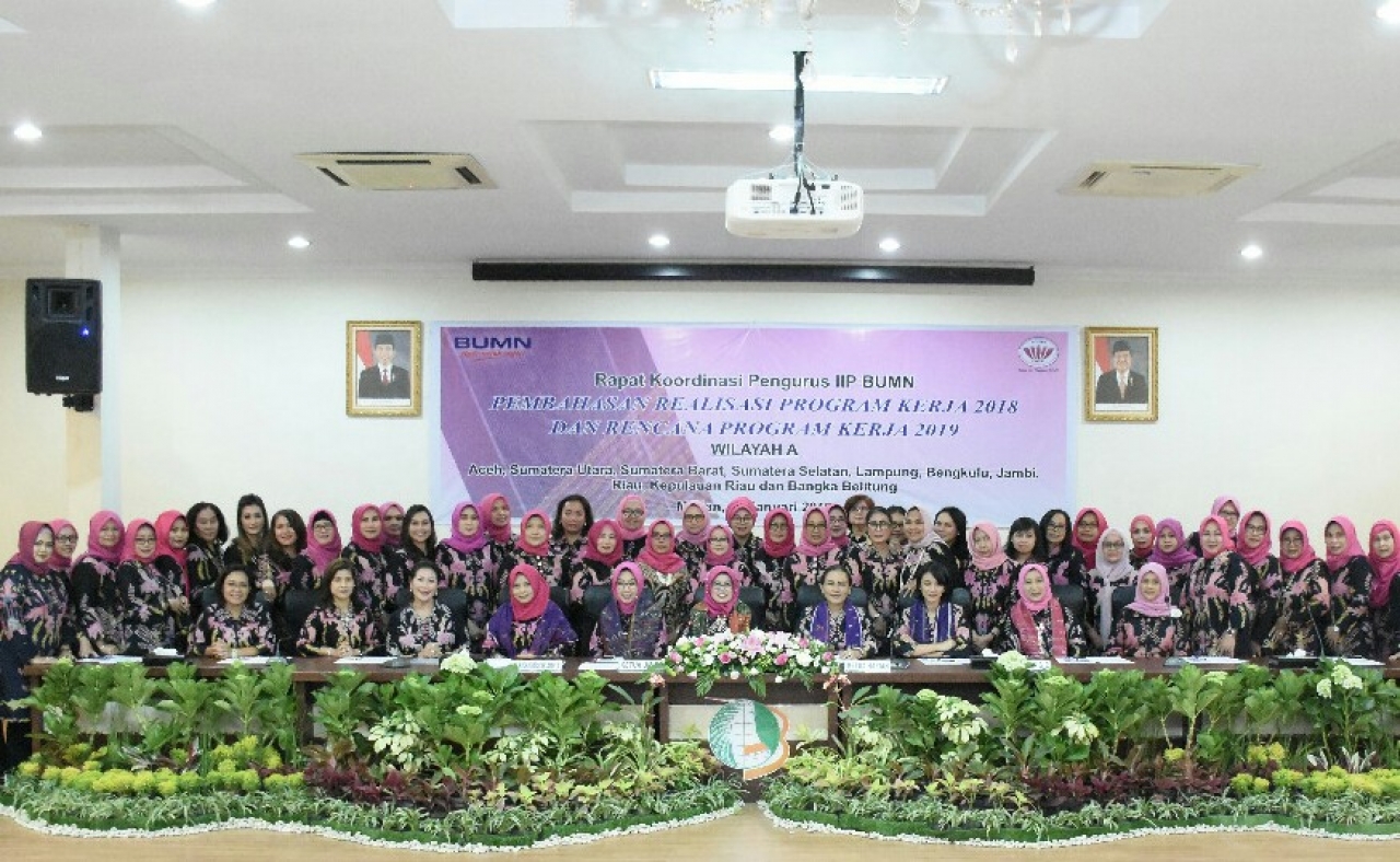 Medan, 14 Januari 2019,IIP BUMN Sumatera Utara mengikuti acara " Rapat Koordinasi Pengurus IIP BUMN Wilayah A " di Kota Medan.Yang hadir pada acara ini dari IIP BUMN Sumatera Utara adalah : Ibu Lenny Teten D.Triana ,Ibu Ari Bambang,Ibu Susandarini Trisilo,Ibu Tatik M.Mutaqin,Ibu Ginta Weddy,Ibu Enggar Leo,Ibu Reni Novianto,Ibu Beby Suhendri,Ibu Raja Efa Rusli, dan Ibu Nunung Suhadi.