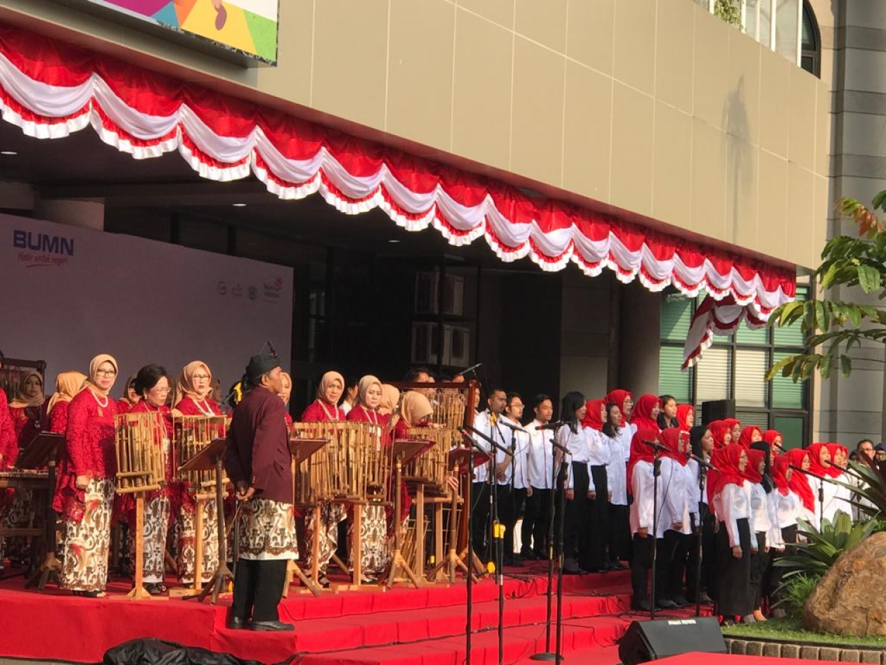 Grup angklung Sandya Barya Angklung BUMN tampil memukau dalam upacara peringatan Hari Kemerdekaan RI yang ke 73 di Kementerian BUMN. Berkolaborasi dengan Paduan Suara PT Telkom , grup angklung yang beranggotakan Ibu Ibu Anggota IIP BUMN dan DWP KBUMN memainkan beberapa lagu yaitu Hari Kemerdekaan, Maju Tak Gentar, Halo Halo Bandung dan diakhiri dengan medley lagu daerah yaitu Yamko Rambe Yamko, Ayo Mama, dan Manuk Dadali