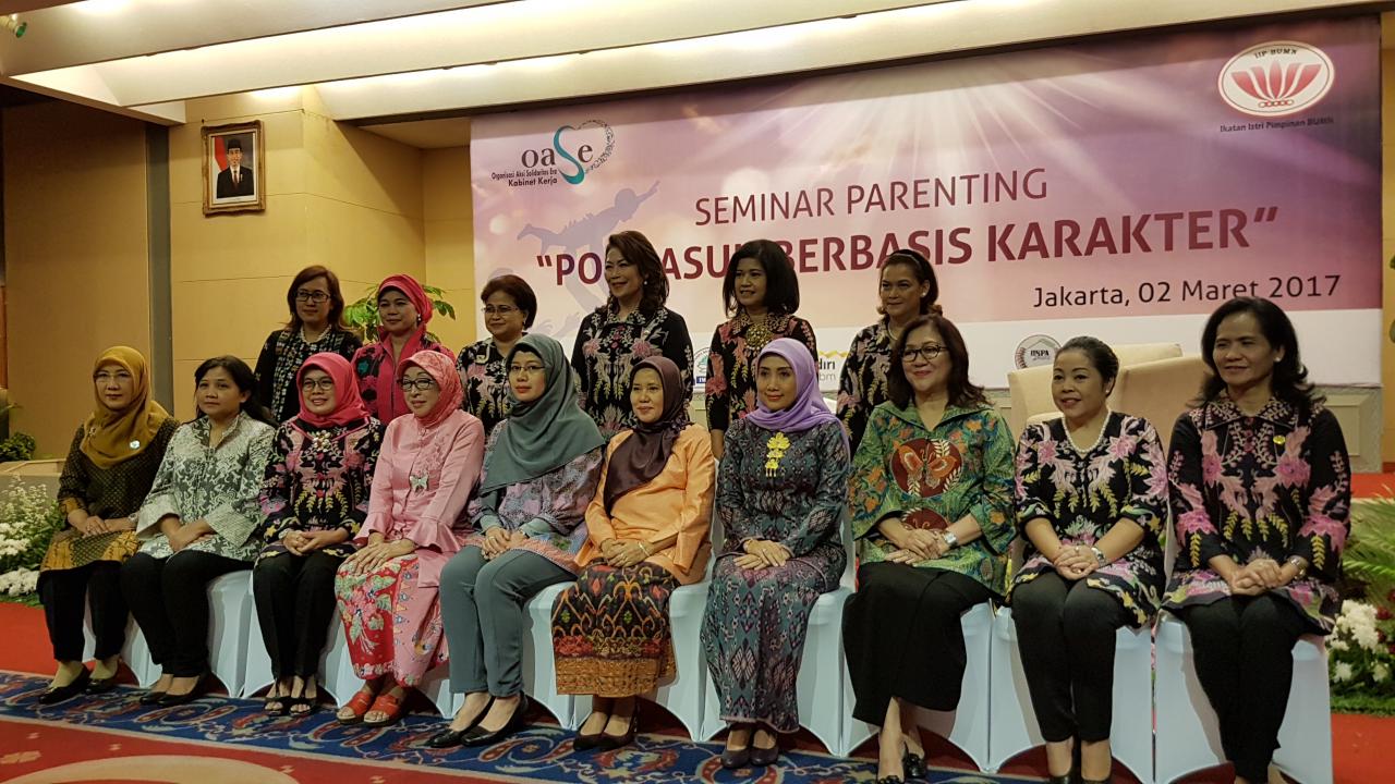 Ibu ibu dari Himpunan Bank Bank Milik Negara ( Himbara ) yang terdiri dari Ikatan Wanita Bank Rakyat Indonesia ( IWABRI), Ikatan Istri Karyawan Bank Mandiri ( IIKBM ) , Kerukunan Keluarga Besar BNI ( KKB BNI ), Ikatan Istri Karyawan dan Pensiunan Bank Tabungan Negara ( IIKPA Batara ) pada hari ini tanggal 2 Maret 2017 bertempat di Menara BTN menyelenggarakan seminar parenting berbasis karakter.