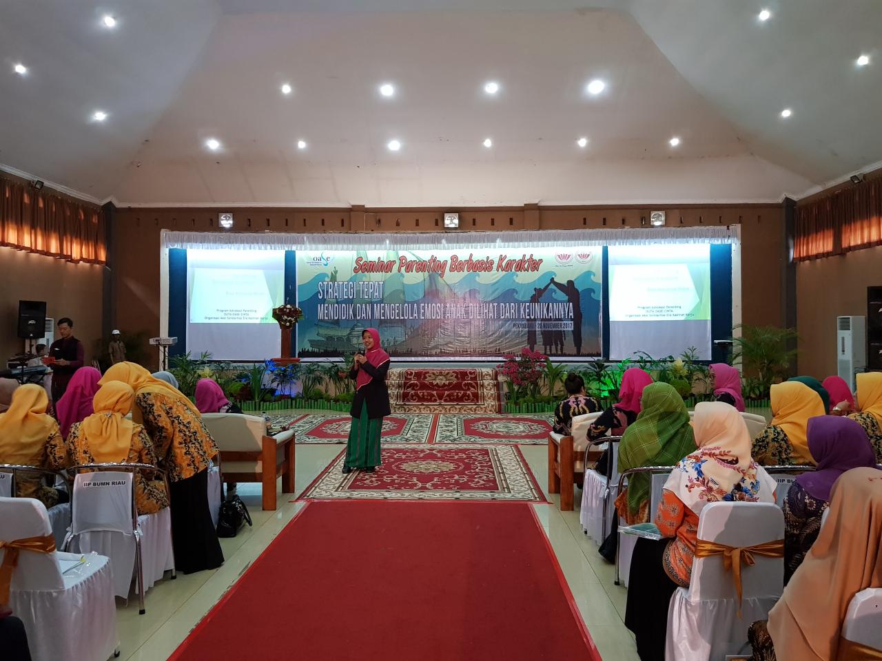 Pekanbaru, 20 November 2017 IIP BUMN wilayah Riau melaksanakan seminar parenting berbasis karakter.Kurang lebih 300 ibu ibu anggota istri karyawan / karyawati BUMN yang berada di wilayah Riau dan beberapa guru dari sekolah binaan PTPN 5 dan instansi terkait mengikuti seminar ini . Materi seminar disampaikan oleh Duta Oase Cinta Ibu Marnarita Yarsi dengan tema "Strategi Tepat Mendidik dan Mengelola Emosi Anak Dilihat dari Keunikannya"