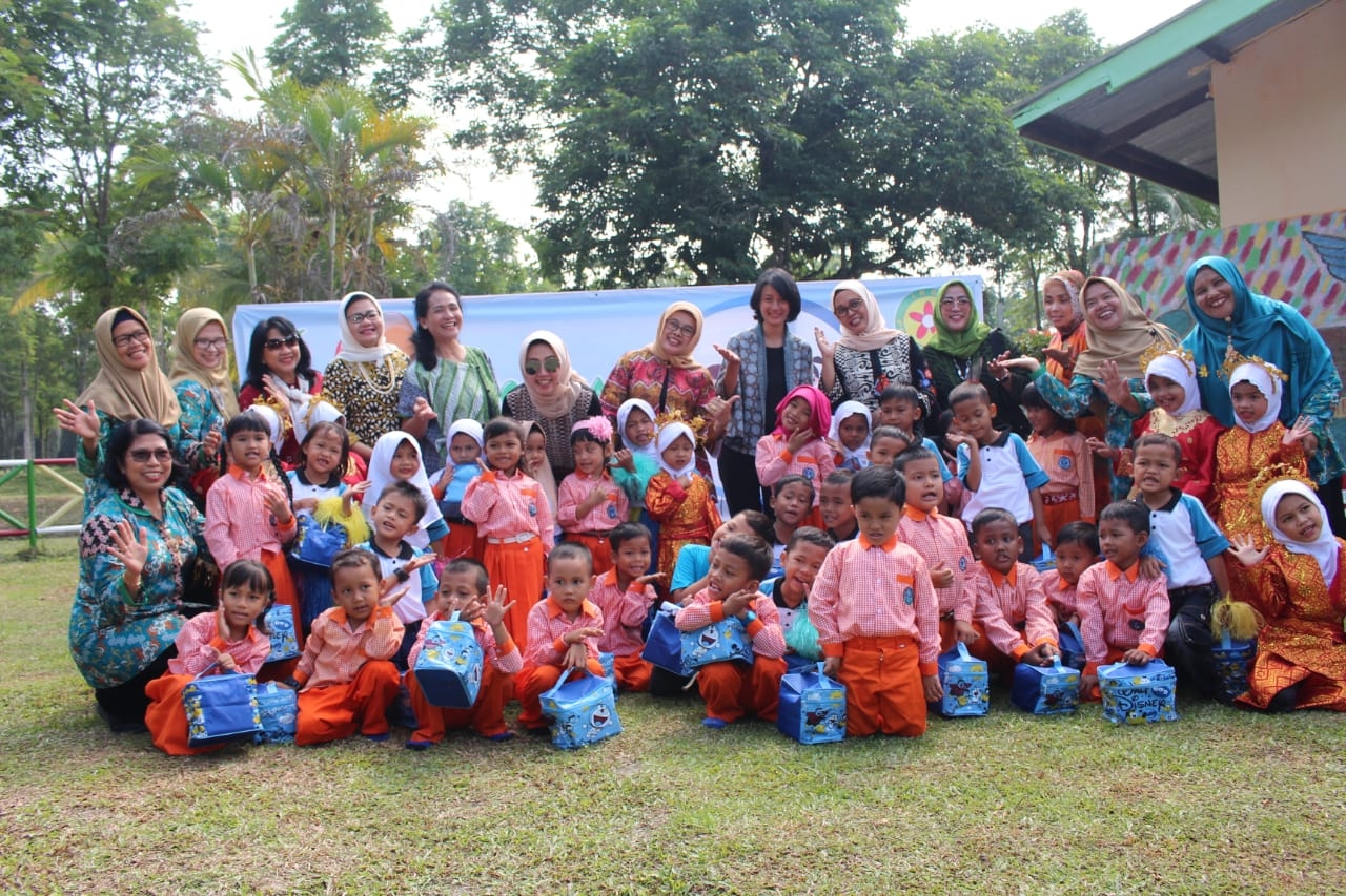 Selanjutnya rombongan Ketua Umum IIP BUMN berkunjung ke TK Kuntum Melati kebun Sei Galuh, sekolah binaan PTPN V. Dalam kesempatan ini juga dibagikan tumbler dan tempat bekal untuk 38 anak-anak TK. Hal ini tentu saja dengan harapan agar anak-anak mengurangi penggunaan plastik saat membawa bekal makanan dan minuman ke sekolah.