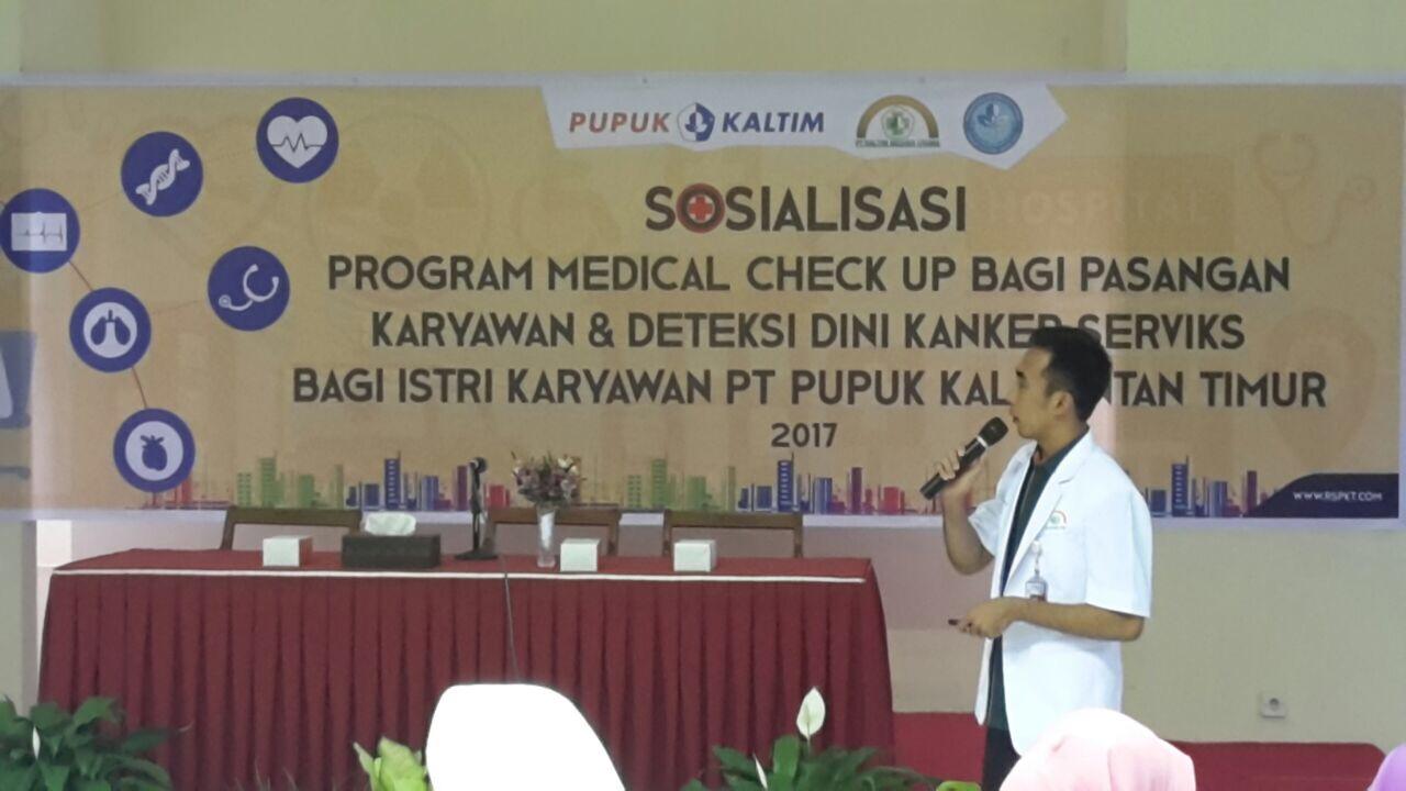 Sebagai upaya untuk memberikan pengetahuan yang benar mengenai Program Medical Check Up dan deteksi dini kanker serviks, IIP BUMN Kaltimra bekerjasama dengan PT. Pupuk Kalimantan Timur dan Rumah Sakit Pupuk Kaltim (PT. Kaltim Medika Utama) menyelenggarakan acara Sosialisasi Medical Check Up bagi pasangan karyawan dan deteksi dini kanker serviks.