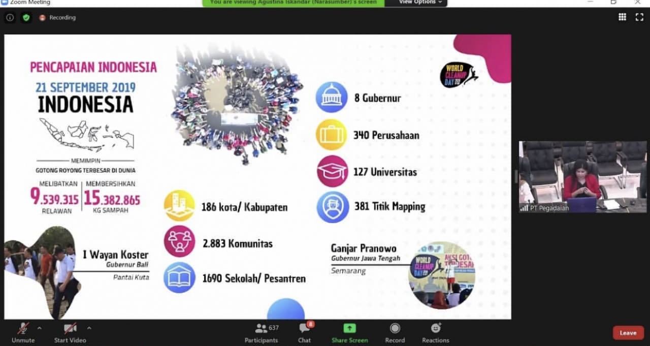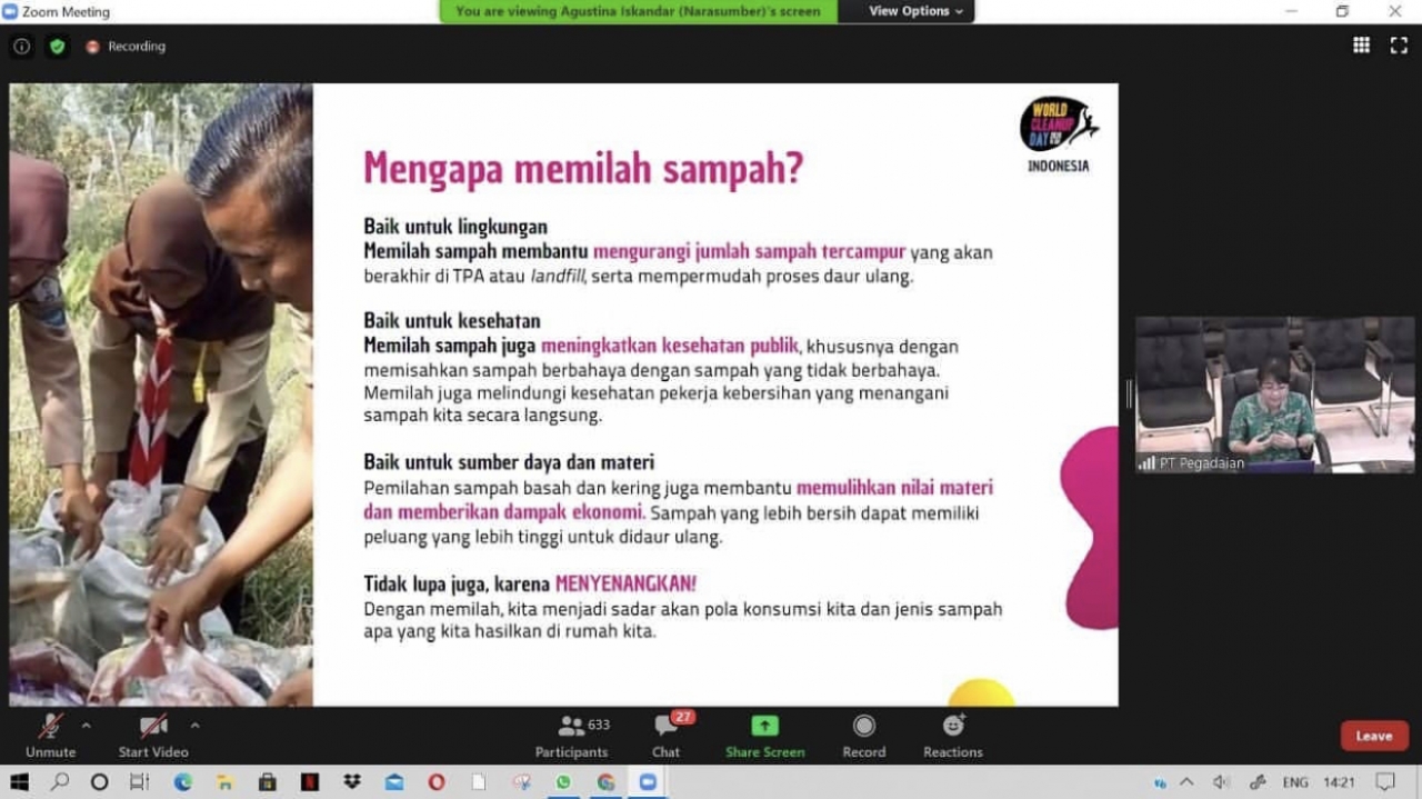 Pengurus dan anggota IIP BUMN PW Bengkulu mengikuti Sosialisasi Gerakan Memilah Sampah dari Rumah "World Clean Up Day" secara virtual by Zoom Meeting.