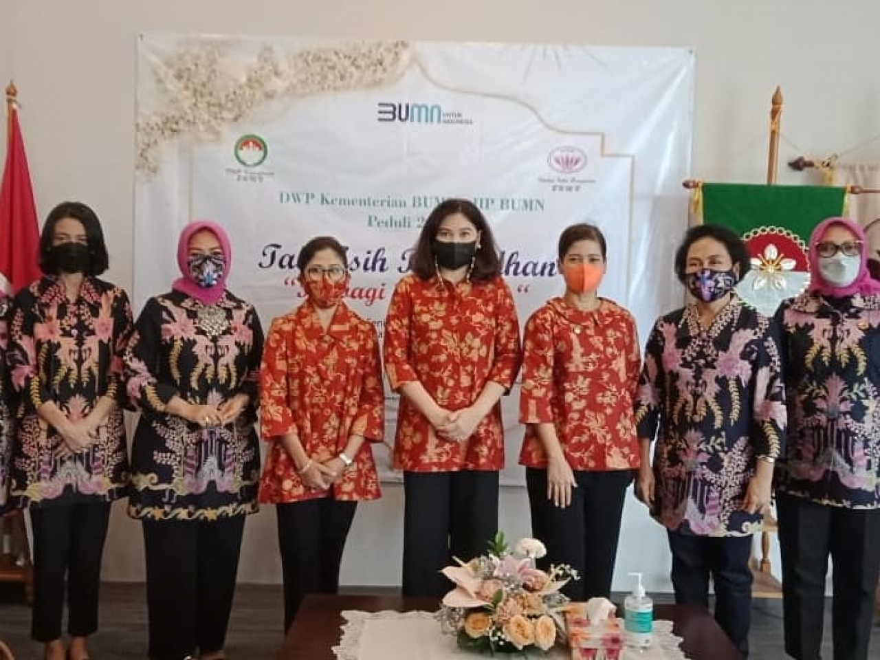 Turut hadir Penasehat DWP Kementerian BUMN sekaligus Ketua Umum IIP BUMN Ibu Liza Thohir, Penasehat DWP Kementerian BUMN dan Wakil Ketua Umum IIP BUMN Ibu Sinta Pahala dan Ibu Irin Kartika, serta Ketua DWP BUMN Ibu Nani Susyanto beserta jajarannya, Ketua Harian IIP BUMN Ibu Yuni Marsono.