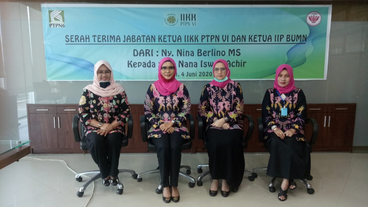 Acara Sertijab Ketua IIP BUMN Wilayah Jambi dari Ny. Nina Berlino ke Ny. Nana Iswan pada tanggal 4 Juni 2020 yang dilakukan secara virtual di Kantor PTPN VI Jambi.