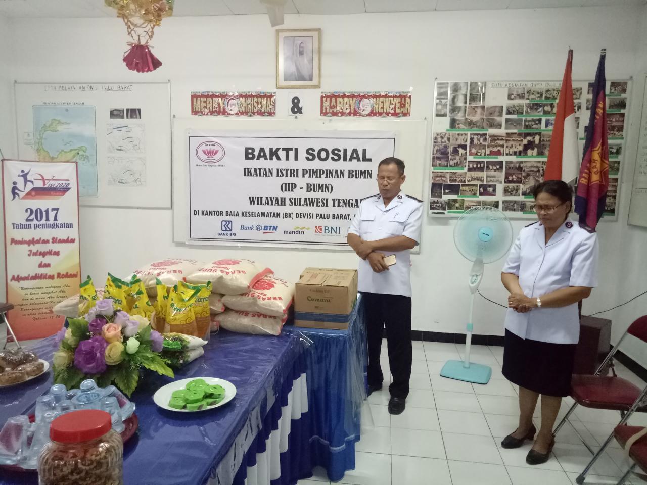 Dalam Rangka Natal dan Tahun Baru IIP BUMN Sulawesi Tengah berbagi kasih kepada Masyarakat Kurang Mampu di Desa BK dan sekitarnya diwilayah kecamatan Marawola Kabupaten Sigi Sulteng. acara ini dipimpin Langsung ketua IIP BUMN Wilayah Suteng Ny. Gina Bambang didampingi Wakil ketua Bid Pendidikan Ny. Wahib dan wakil ketua Bidang Sosial Budaya Ny.Reno serta anggota IIP BUMN Sul-Teng Lainnya yang merupakan perwakilan BNI, Bank Mandir, BRI, BTN dan Jasa Raharja. Di Desa BK rombongan IIP BUMN disambut oleh kepala Devisi Bala KeselamatanBpk. Mayor Suprayino dan Ibu,. dalam Sambutannya Bpk. Suprayitno mengucapkan banyak terima kasih kepada IIP BUMN wilayah Sulteng yang mau berbagi, dan beliau berjanji untuk membantu ibu menyalurkan sumbangan kepada orang yang membutuhkan di kaki gunung Gawalise sampai ke ujung sungai Gumbasa,... sambutan Ketua IIP yang diwakili oleh Ny. Reno juga menyampaikan terima kasih kepada pimpinan Devisi atas kesediaan beliau menjadi perpanjangan tangan IIP BUMN Wilayah Sulteng untuk membagi-bagikan sumbangan.