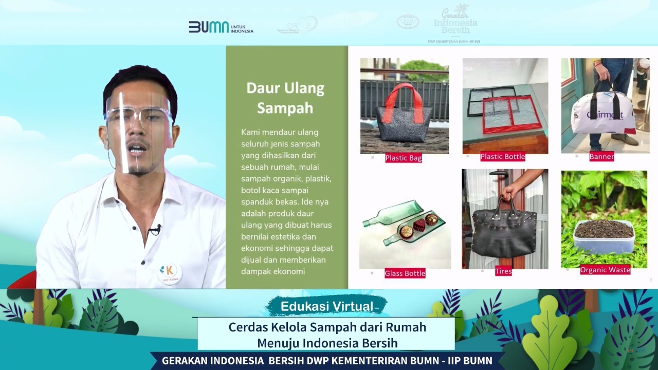 Gerakan Indonesia Bersih, DWP dan IIP Kementrian BUMN kembali mengadakan acara edukasi virtual pada hari Senin, 26 Oktober 2020. Dengan mengusung tema " Cerdas Mengelola Sampah dari Rumah Menunju Indonesia Bersih " acara diikuti oleh 1000 peserta melalu zoom meeting dan 1050 peserta mengikuti secara live di you tube.