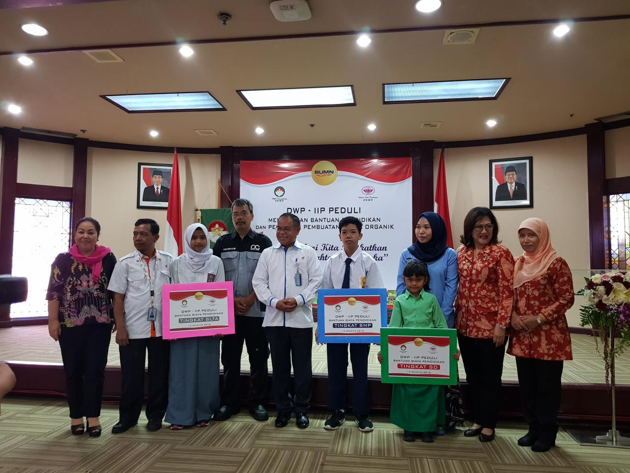 Acara DWP - IIP Peduli Memberikan Bantuan Pendidikan dan Pelatihan Pembuatan Tempe Organik ditujukan bagi putra dan putri pegawai gol II, honorer dan outsourching di lingkungan kementrian BUMN. Acara dibuka dengan doa oleh ibu Husna A. Hadi, kemudian sambutan ketua panitia ibu Hambra dan selanjutnya Bapak Aloysius memberikan sambutannya yang isinya memotivasi para penerima bantuan serta mengapresiasi langkah nyata DWP dan IIP BUMN.