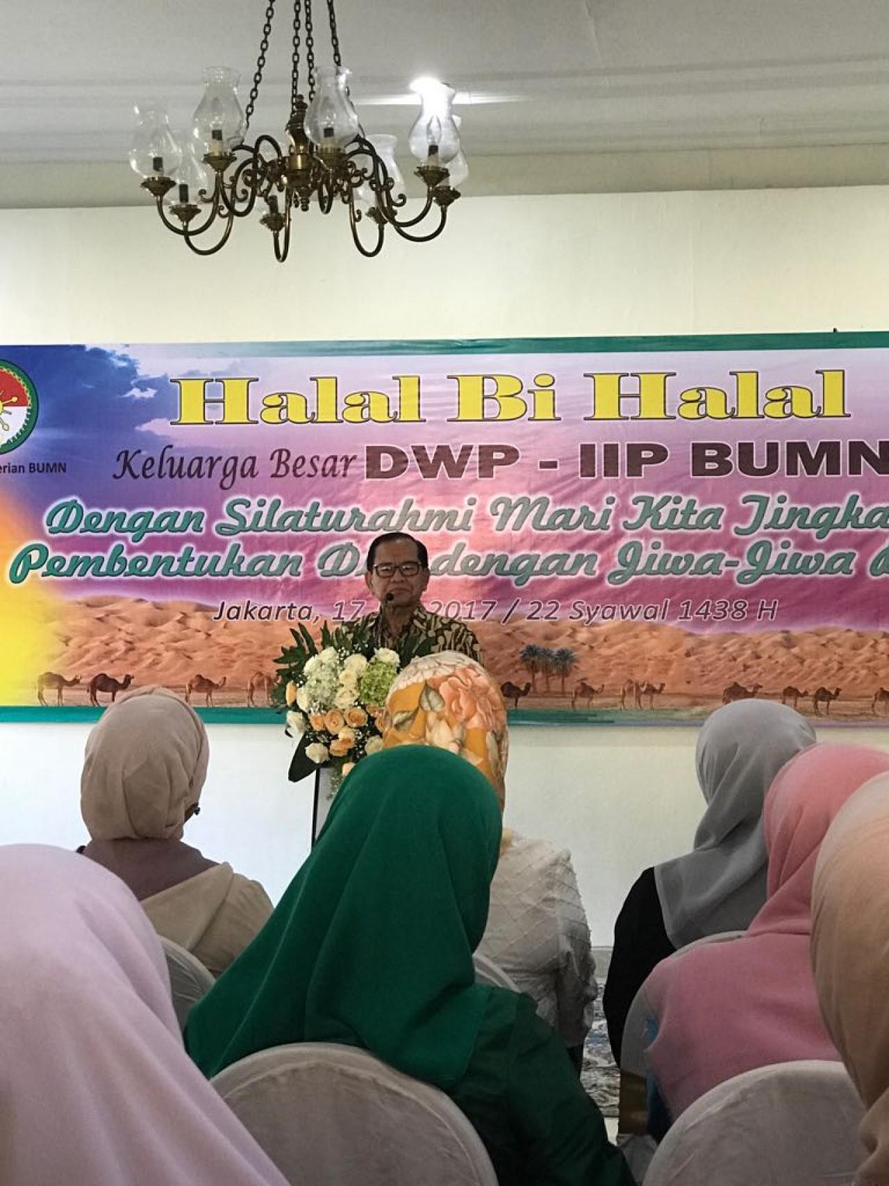Senin, 17 juli 2017 keluarga besar DWP dan IIP BUMN menyelenggarakan halal bihalal di rumah dinas Mentri BUMN jln widya candra IV no 15.Acara yang dihadiri lebih dari 150 ibu ibu ini dibuka dengan sambutan Ketua Umum IIP BUMN Ibu Eri Imam Apriyanto.