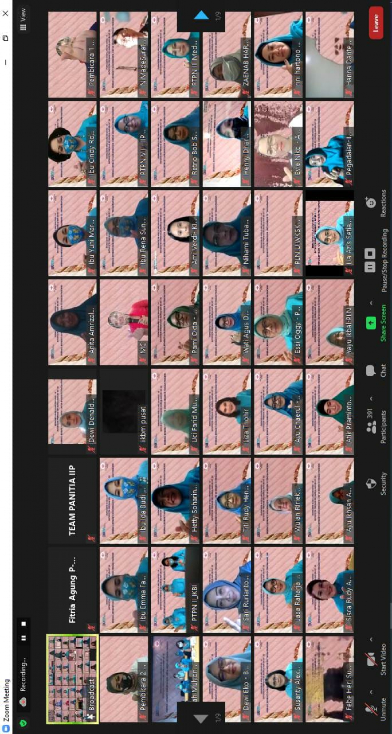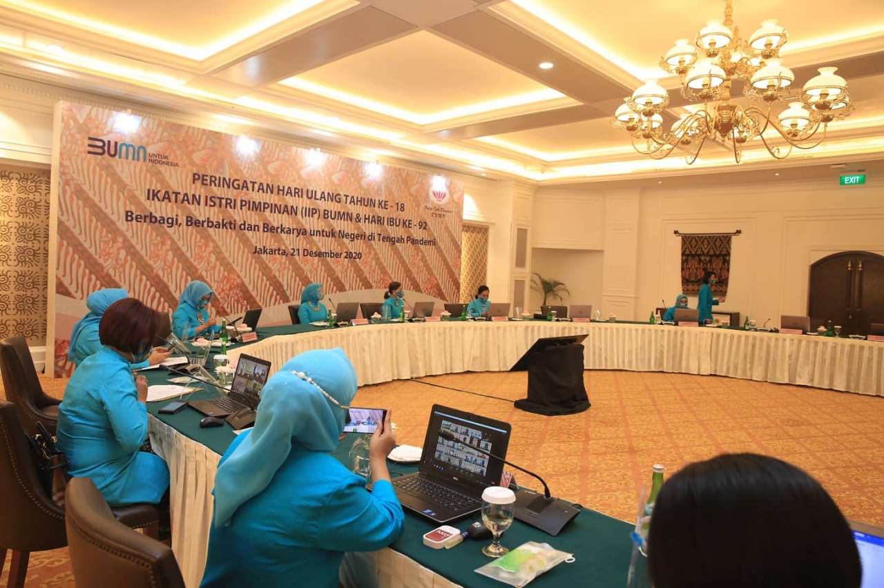 Ketua Umum IIP BUMN Ibu Liza Thahir. Dalam sambutannya Ibu Liza mengapresiasi IIP BUMN masih bisa memberi manfaat saat pandemi. Dan berharap IIP masih bisa berkarya dan berbakti bagi Indonesia