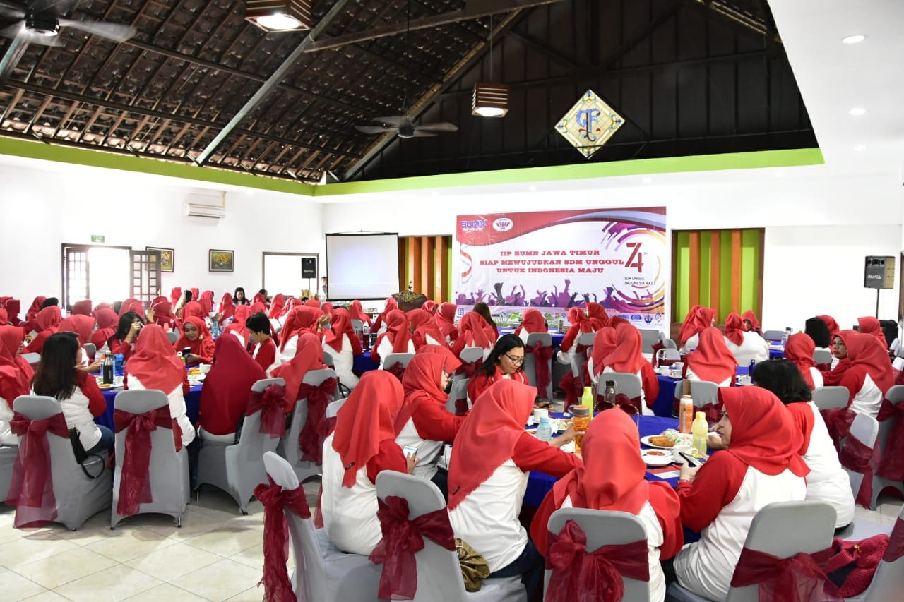 Tema yang diangkat oleh IIP BUMN Jawa Timur dalam Peringatan HUT Kemerdekaan RI ke-74 tahun ini, "IIP BUMN Jawa Timur Siap Mewujudkan SDM Unggul Untuk Indonesia Maju". Di samping itu, juga dilaksanakan Sosialisasi Gerakan Indonesia Bersih melalui kampanye "Cerdas Berplastik".