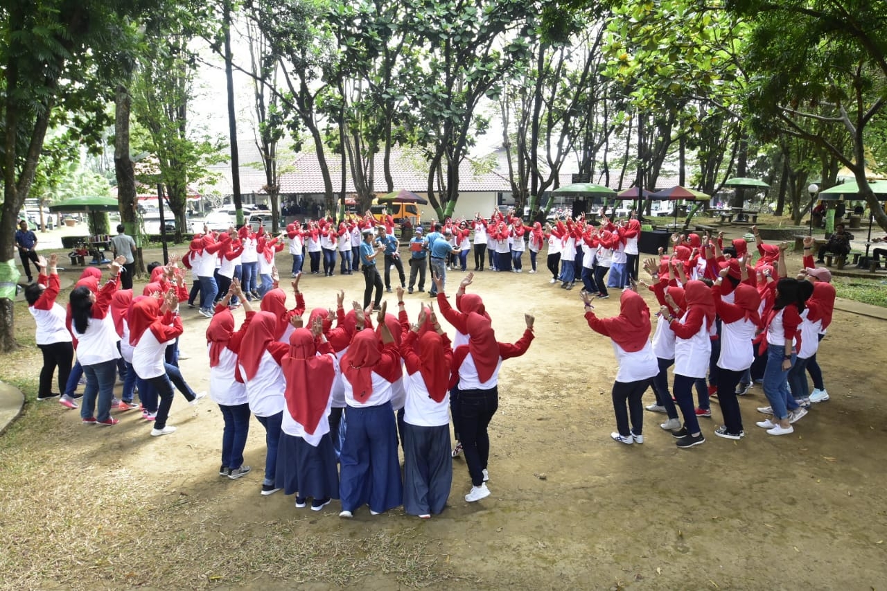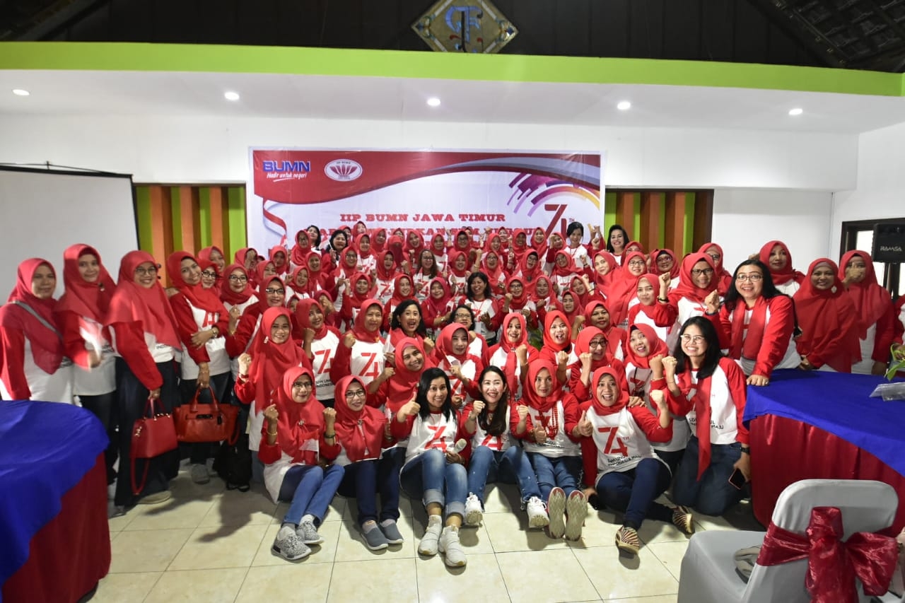 Ikatan Istri Pimpinan BUMN Wilayah Jawa Timur memperingati Hari Ulang Tahun Kemerdekaan Republik Indonesia yang ke-74, sekaligus melakukan Sosialisasi Gerakan Indonesia Bersih, Selasa (27/8/2019).