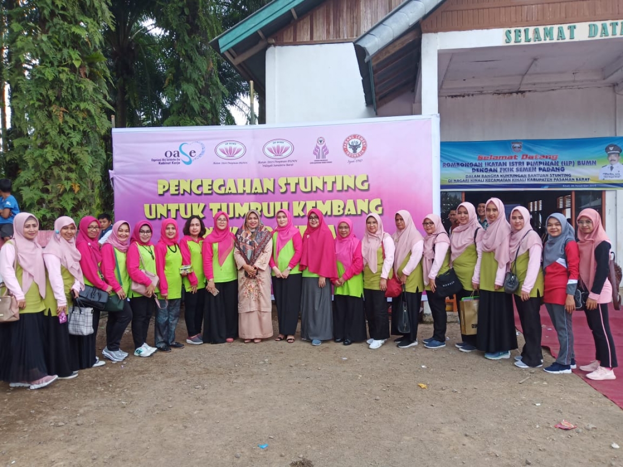IIP BUMN Sumbar bekerjasama dengan Forum Kominikasi Istri Karyawan Semen Padang melakukan kunjungan bantuan stunting ke Jorong Bunuik- Nagari Kinali kabupaten Pasaman Barat, 6 Nopember 2019.