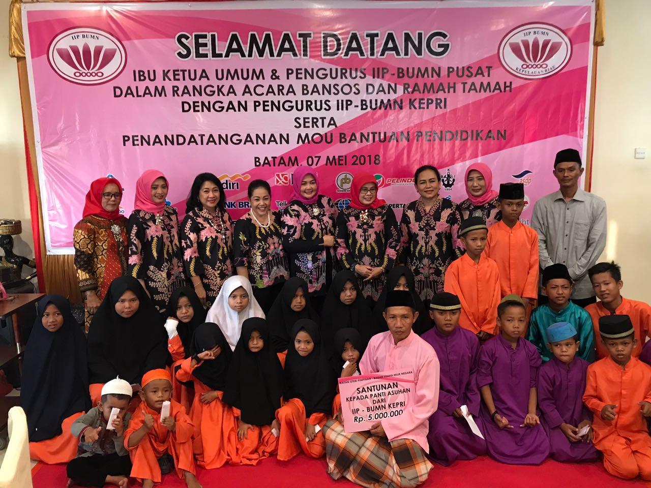 Batam, 7 Mei 2018 Ketua Umum IIP BUMN ibu Eri Imam Apriyanto dan pengurus IIP BUMN Pusat menghadiri serangkaian kegiatan yang diselenggarakan oleh IIP BUMN wilayah Kepri di Batam. Kegiatan di awali dengan bakti sosial menyambut bulan ramadhan berupa santunan kepada anak yatim.