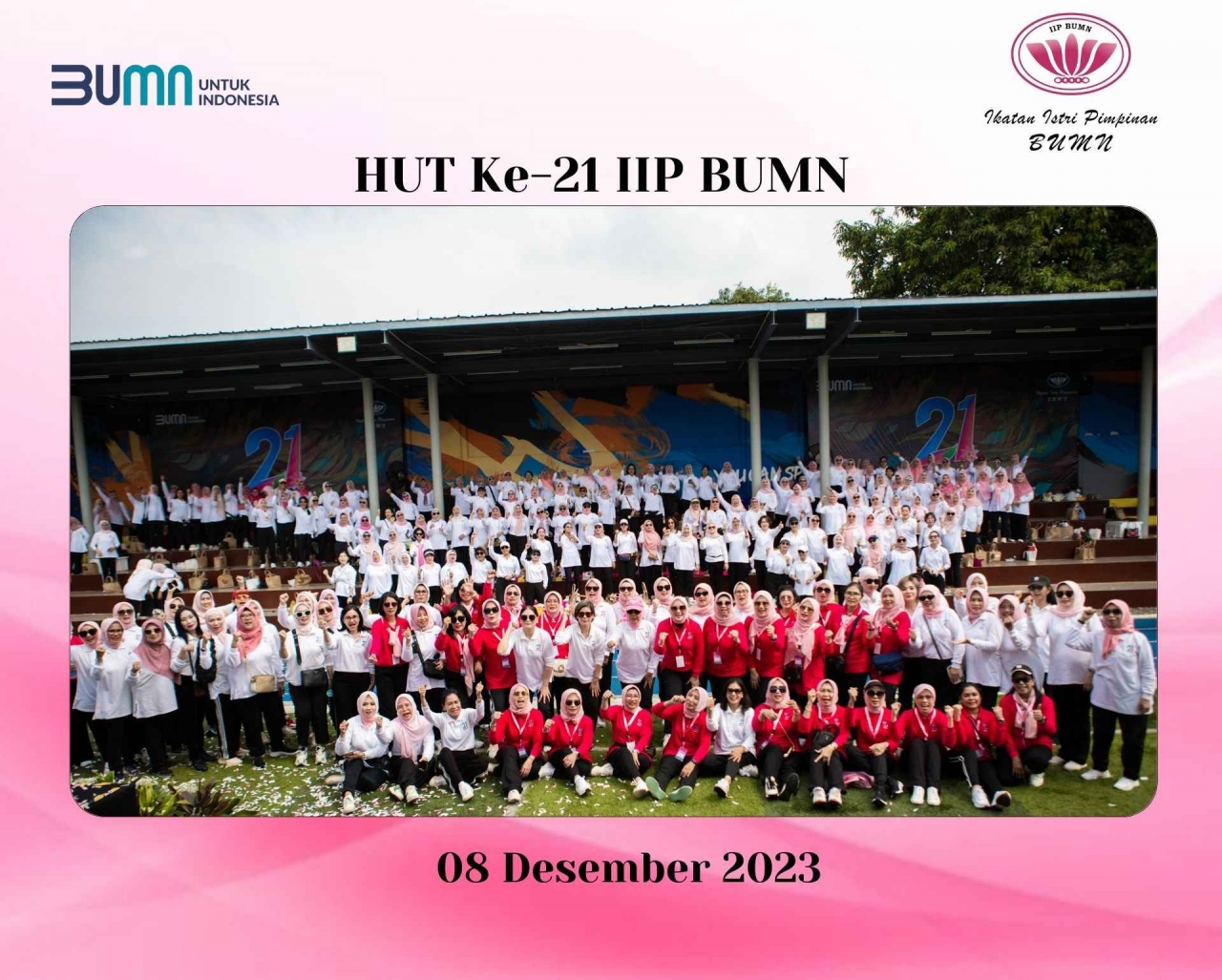 Peringatan HUT Ke-21 IIP BUMN Setelah selesai acara zumba, dilanjutkan dengan acara inti peringatan hari ulang tahun, yang dipandu dan dibuka oleh MC Andrea Lee. Acara diawali dengan menyanyikan bersama lagu Indonesia Raya dan Mars IIP BUMN.