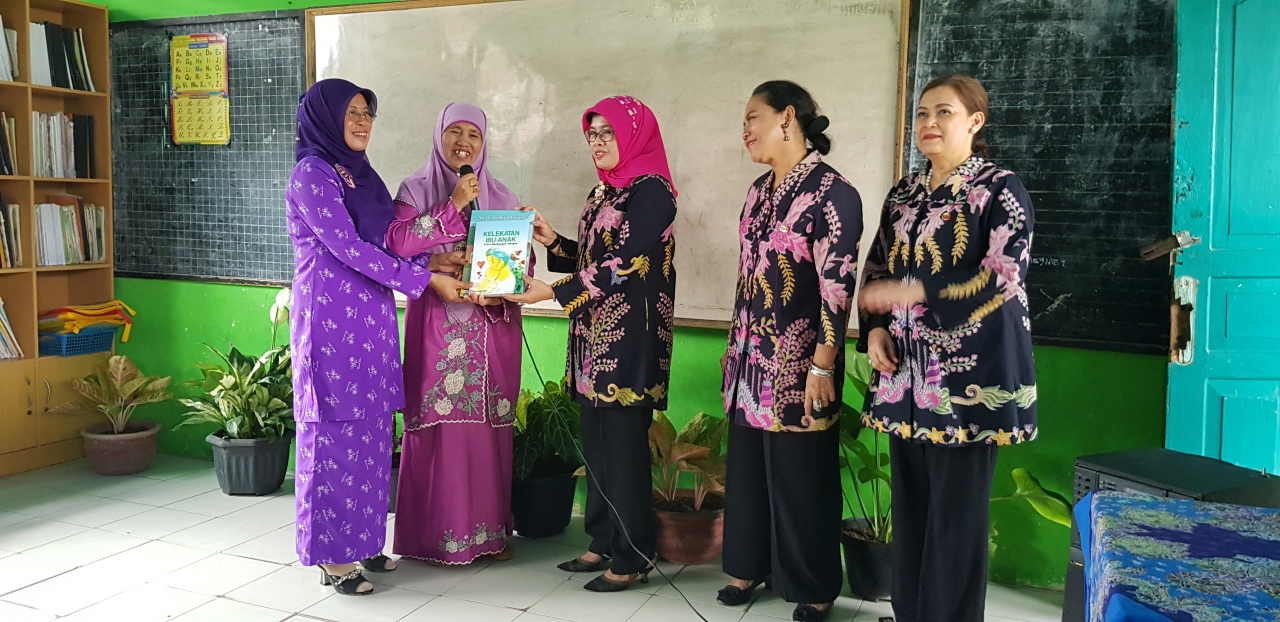 Dalam kesempatan ini juga disampaikan bantuan Buku Pilar Karakter dan Ibu Ibu IIP BUMN yang hadir secara spontan dan sukarela juga mengumpulkan dana donasi untuk Ibu Ibu Guru.