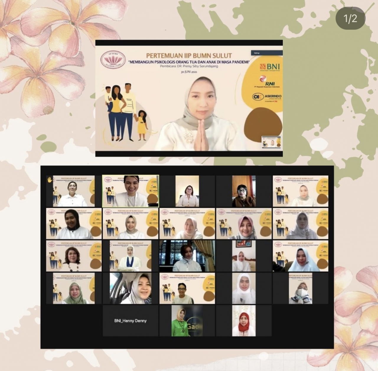 Telah dilaksanakan kegiatan parenting webinar IIP BUMN SULUT dengan tema "Membangun Psikologis Orang tua dan Anak di masa Pandemi". dengan pemateri DR. Preisy Siby Sarundajang.