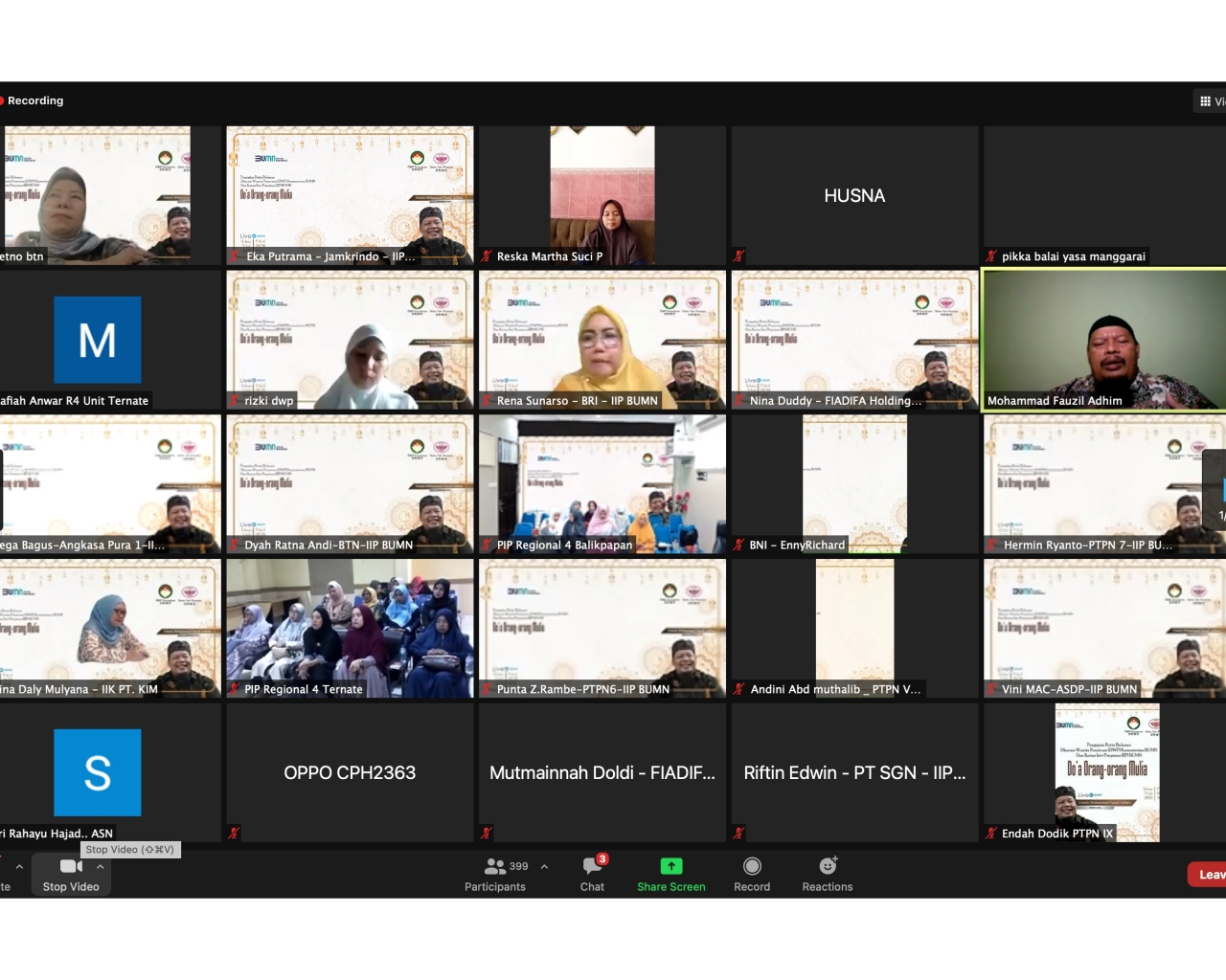 Pada hari Selasa, tanggal 5 Juli 2022 dilaksanakan Pengajian Bulanan DWP-IIP BUMN dengan mengundang Ustadz Mohammad Fauzil Adhim sebagai penceramah. Tema yang disampaikan adalah “Doa Orang-orang Mulia”. Pengajian dipandu Ibu Tata Rudi Rusli, sedangkan qori Ibu Husna Abdul Hadi dan saritilawah Ibu Rizky Rosiqin. Pengajian dihadiri Ibu Rena Sunarso, yang merupakan Ketua Harian IIP BUMN dan 400 peserta.