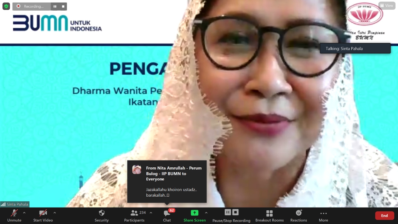 Dengan mengucap syukur kehadirat Allah SWT, pada hari Kamis 8 April 2021 telah dilaksanakan pengajian bulanan DWP Kementerian BUMN-IIP BUMN melalui zoom, penceramah bapak Ust.Rahmat Ilahi Lc MA dengan tema Fiqih Puasa Ramadhan sesuai sunnah Rasulullah.