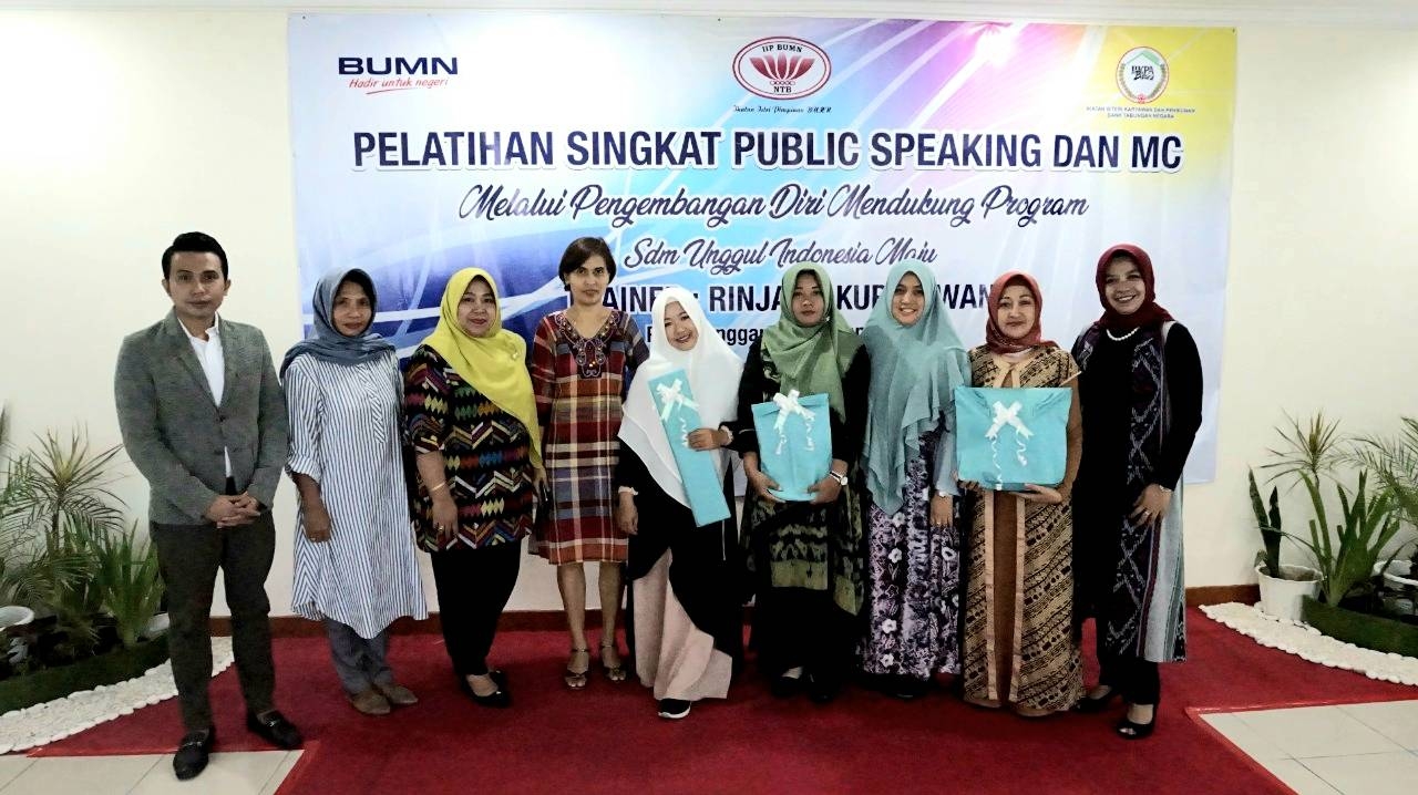 Dalam rangka mengisi acara kegiatan pertemuan rutin IIP BUMN Wilayah NTB berkerjasama dengan IIKPA Bank BTN Mataram. Ny. Selly Dedi Kurniadi sebagai Ketua IIKPA Bank BTN Mataram sekaligus ketua IIP BUMN Wilayah NTB sebagai panitia pelaksana menggagas acara Pelatihan Singkat Public Speaking dan MC. Harapan diselenggarakannya acara tersebut agar setiap anggota IIP BUMN Wilayah NTB dapat mengembangkan diri serta memiliki kemampuan untuk berbicara di depan umum.