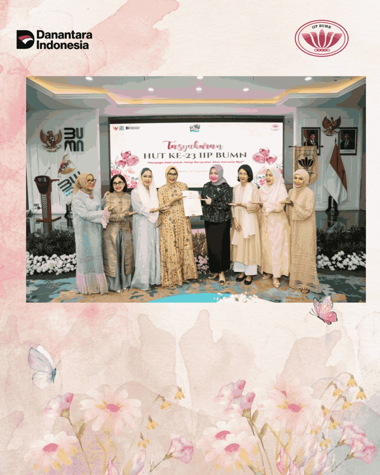 Pengesahan dilaksanakan pada Rabu, 9 Desember 2025, di Gedung BP BUMN Lantai 21, dengan dihadiri Ketua Umum IIP BUMN Ibu Vivi Dony Oskaria, Ketua Harian IIP BUMN Ibu Tata Rahmad Pribadi, Sekretaris Ibu Evi Novel, Sie Organisasi diwakili Ibu Lina Jatmiko dan Ibu Priskilla Waluyo serta Notaris Ibu Nanda Fauz Iwan, SH., M.Kn.