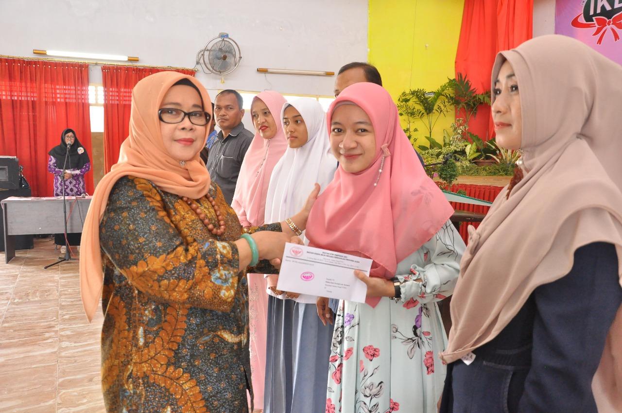 Beasiswa diserahkan oleh ibu Tisa Uri Mulyari sebagai ketua IIP-BUMN Aceh yang bertempat di Wisma Bina Warga PTPN1, Langsa.