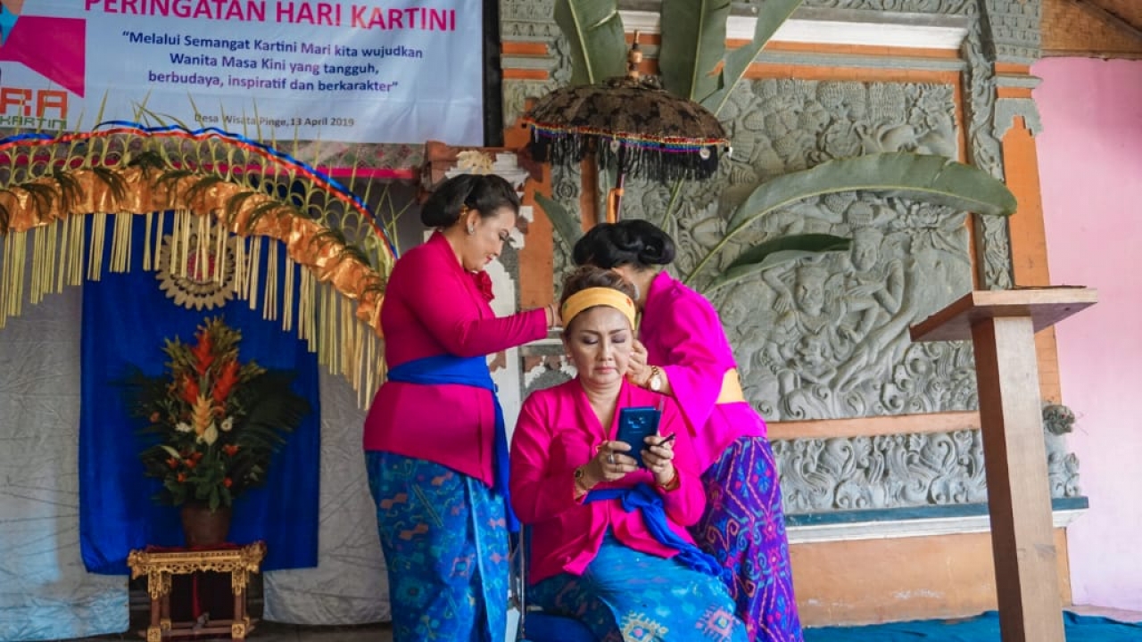 Peringatan Hari Kartini IIP Bali di Desa Wisata Pinge dengan acara Pelatihan Sanggul dan Tata Rias Bali.