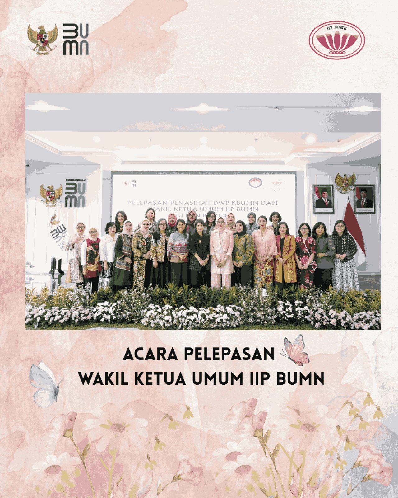 Pada hari Selasa, 11 November 2025 diselenggarakan pelepasan Penasihat DWP BP BUMN dan Wakil Ketua Umum IIP BUMN, Ibu Irin Kartika, yang telah melaksanakan tugas selama 6 tahun.