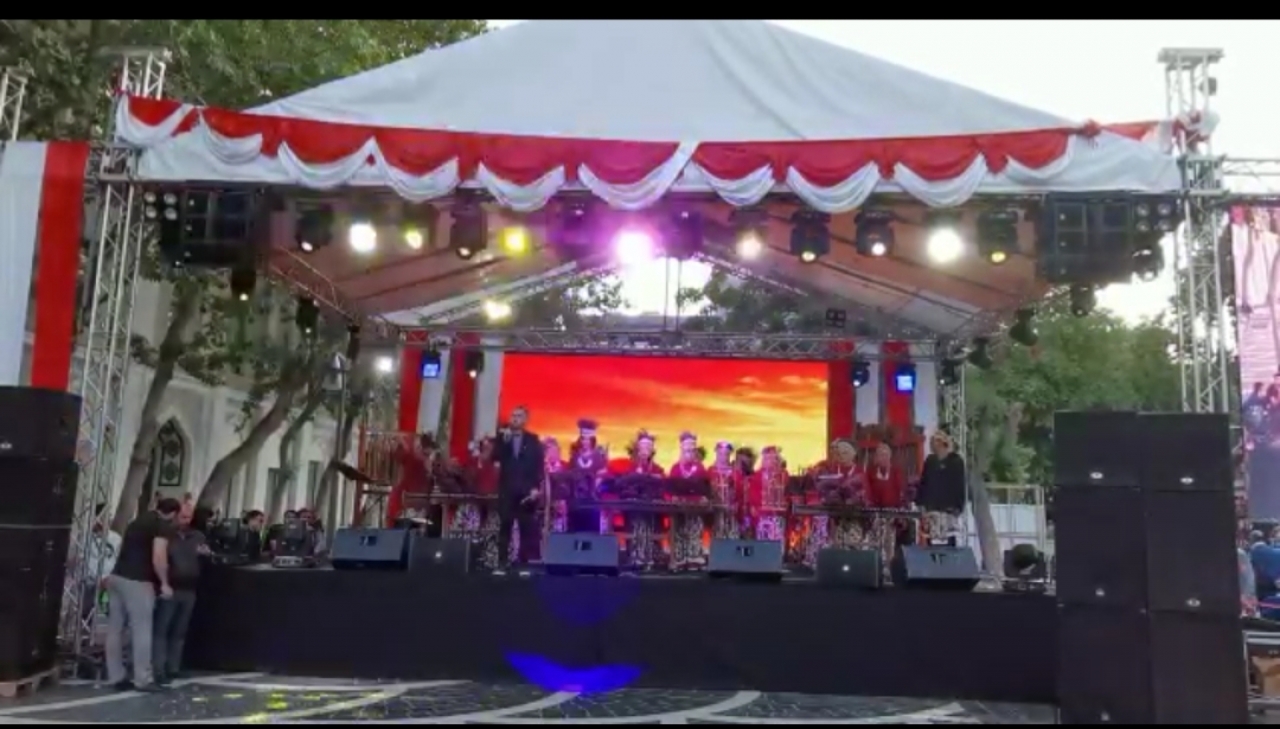 Baku 13 September 2019 . Masih dalam acara Indonesian Cultural Festival di Baku Azerbaijan, Grup Sandya Barya Angklung juga ikut memeriahkan acara yang kali ini diselenggarakan secara out door yaitu di Fountain Square.
