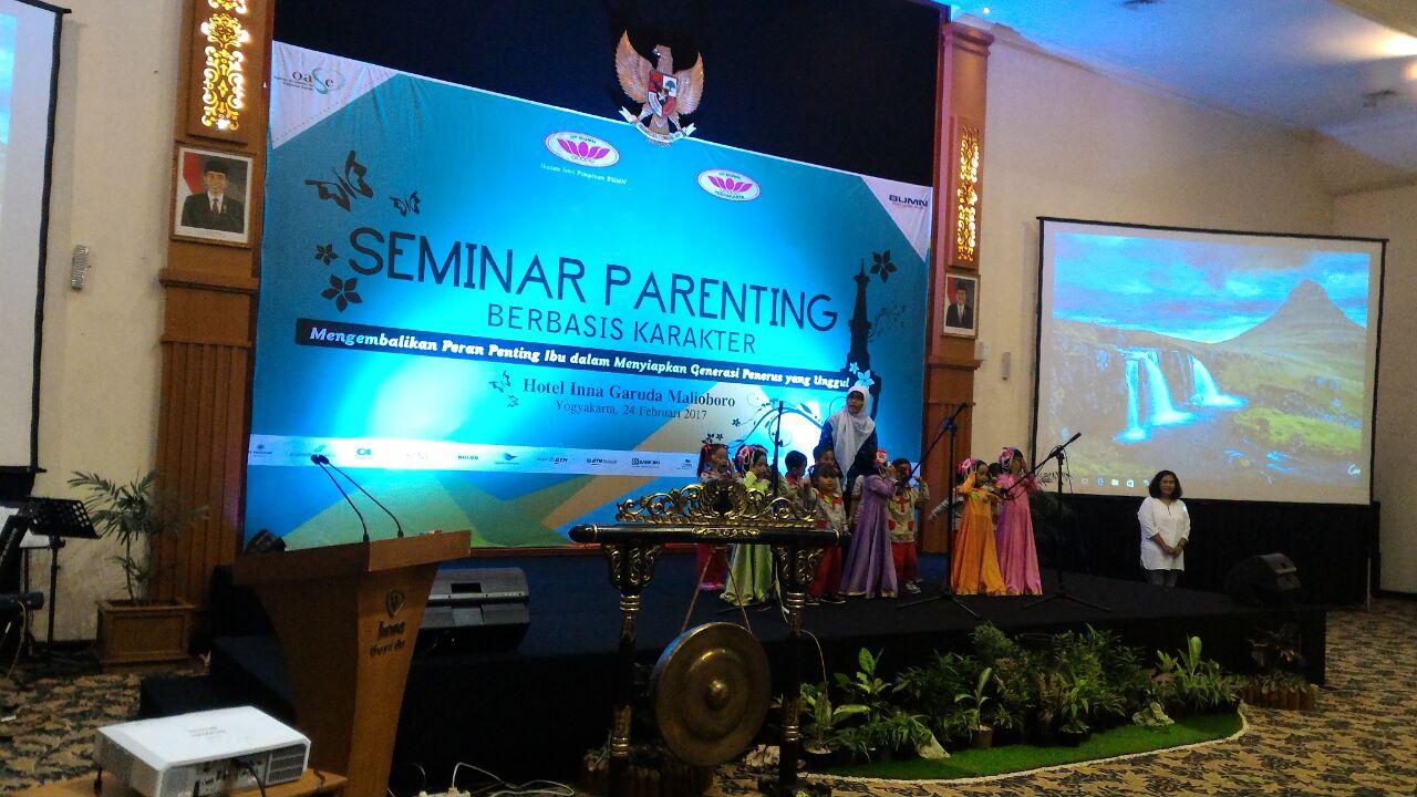 Seminar Parenting Berbasis Karakter dengan tema "Mengembalikan Peran Penting Ibu Dalam Menyiapkan Generasi yang Unggul" diselenggarakan di Borobudur Ballroom Hotel Inna Garuda Malioboro pada 24 Februari 2017.