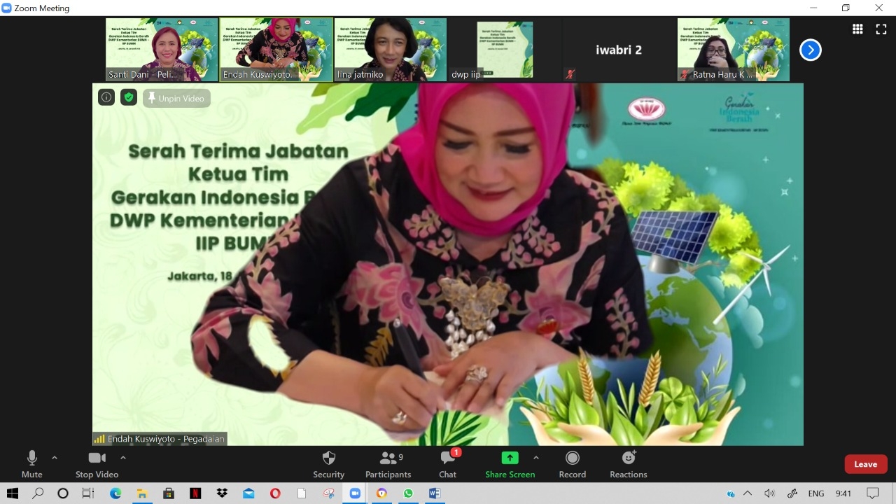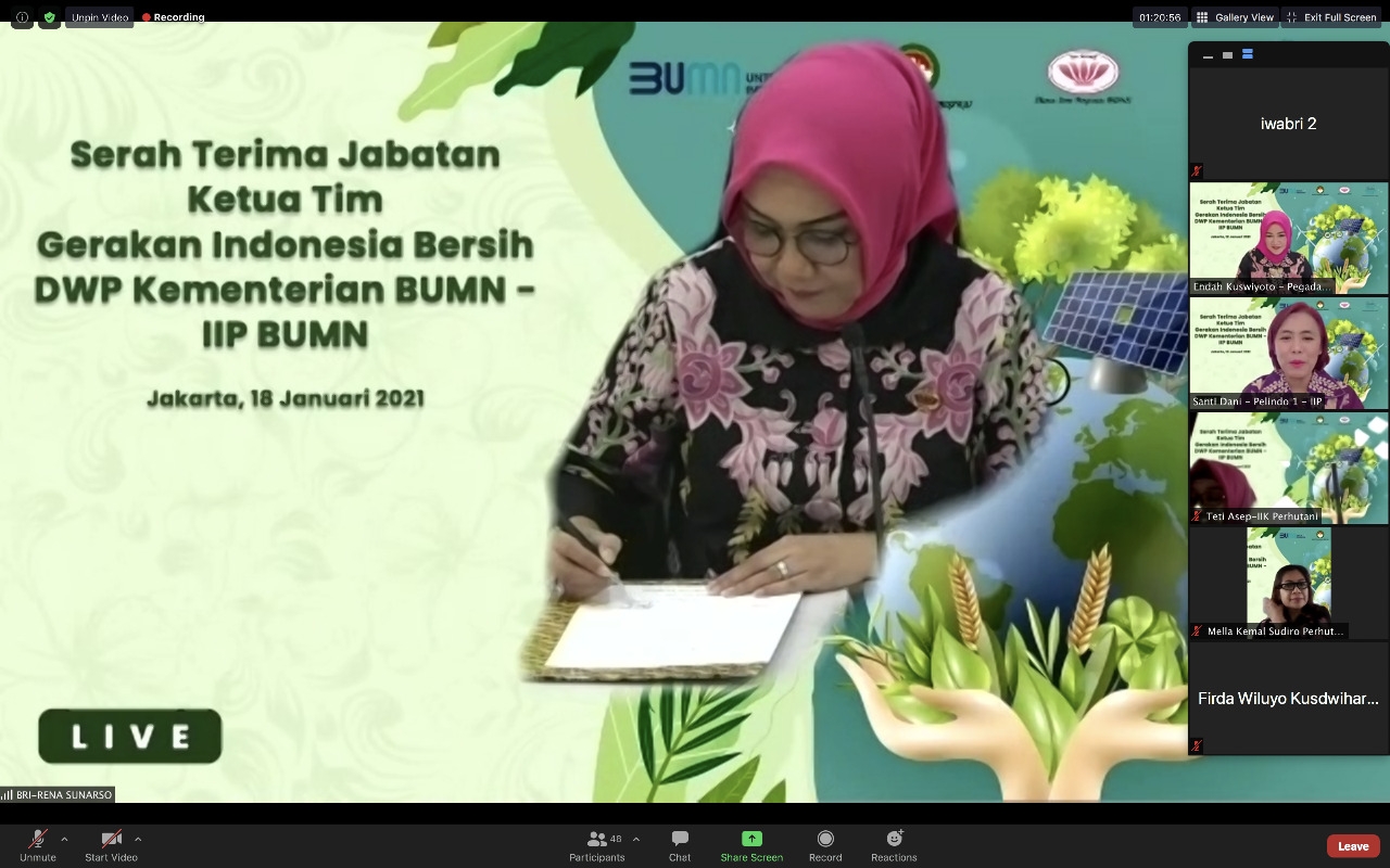 Pada hari ini 17 Januari 2021 telah dilaksanakan Serah Terima Jabatan Ketua Tim Gerakan Indonesia Bersih DWP Kementrian BUMN—IIP BUMN melalui virtual meeting. Yang dihadiri: