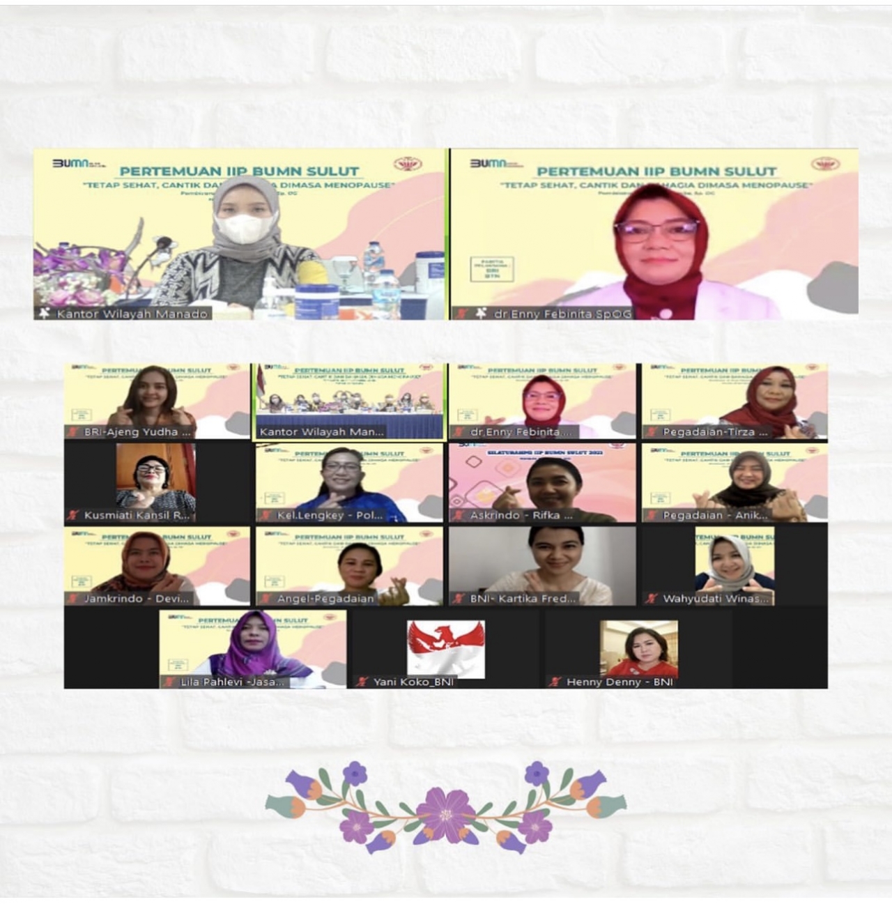 Pelaksanaan Pertemuan IIP BUMN Sulut ini dilaksanakan dengan BRI dan BTN Sulawesi Utara yang menjadi Panitia pelaksana. Acara dihadiri oleh pengurus beserta anggota IIP BUMN Sulut, dimulai dengan pembukaan dan Doa, menyanyikan lagu Indonesia Raya, Mars IIP BUMN , dan Laporan ketua Panitia Pelaksana, dilanjutkan dengan persembahan penampilan dari Panitia Pelaksana yang menyajikan tarian dari Daerah Gorontalo yang disajikan secara meriah melalui online, dilanjutkan dengan sambutan Ibu Ketua IIP BUMN Sulut, Ibu Junit John Sarjono, dan selanjutnya diisi dengan materi kesehatan oleh dr Enny Febinita., Sp. OG dan diahkiri dengan laporan bendahara dan games doorprize